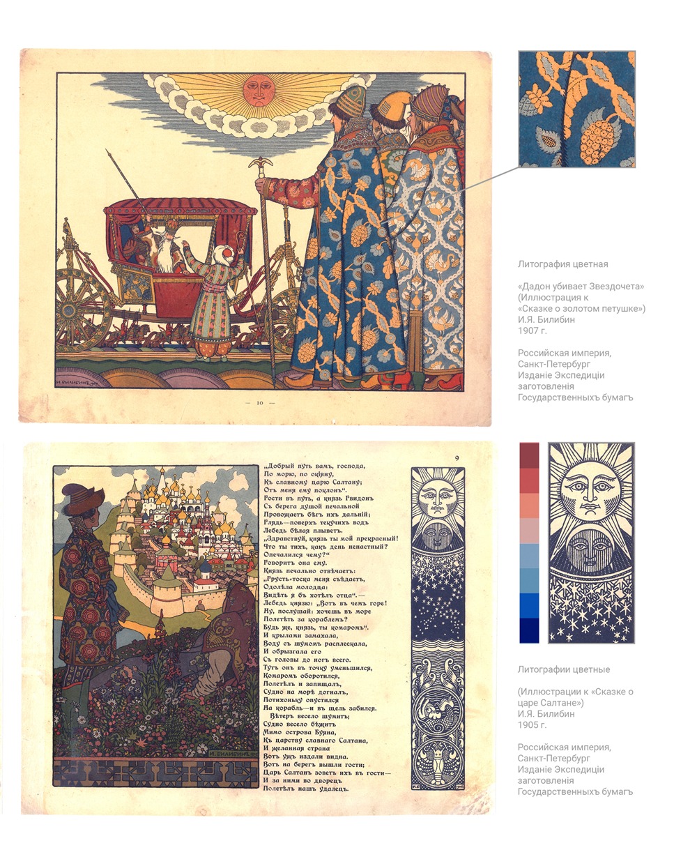 The Osnova Design Museum together with the Fashion Lab of our studio initiated the project “A Fairy Tale for Every Home”, the goal of which is to update the legacy of authors, promote literary and design heritage through current technologies. Graphic works by I.Ya. Bilibin and N.S. Goncharova for the works of A.S. Pushkin “The Tale of Tsar Saltan” and “The Tale of the Golden Cockerel” inspired us to create the collection of carpets.