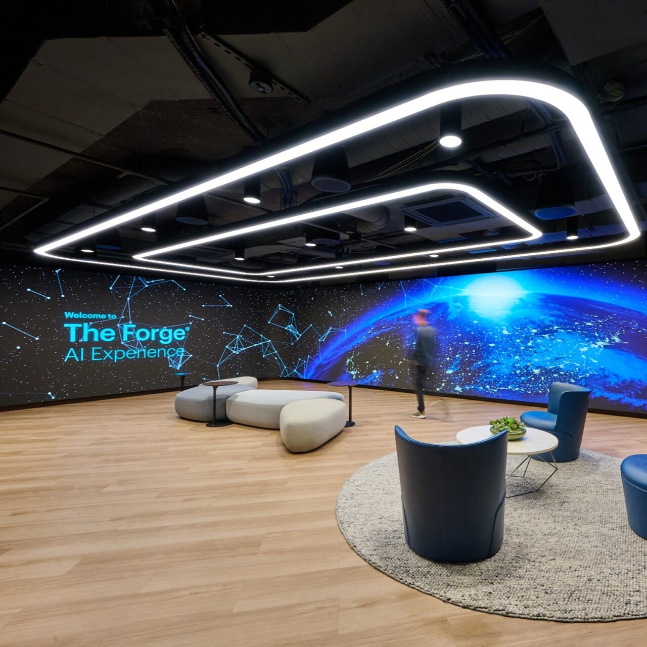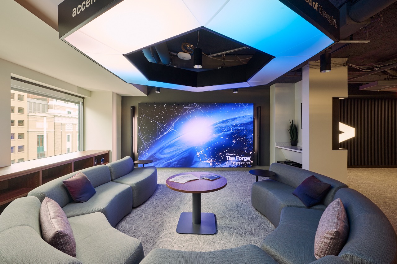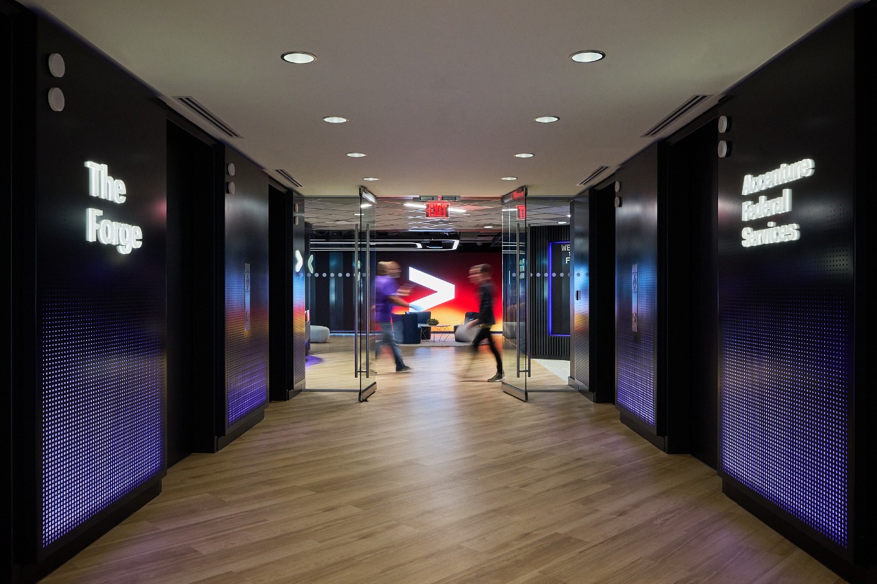 Accenture Federal Services’ The Forge® is a tech-forward experience center in Washington, DC, designed as a purpose-built environment for learning, dialogue and decision-making. In a federal market where stakeholders want to engage technology hands-on and where performance expectations continue to evolve, the space was designed to translate emerging capability into tangible, confidence building moments, all within demanding security and compliance requirements.