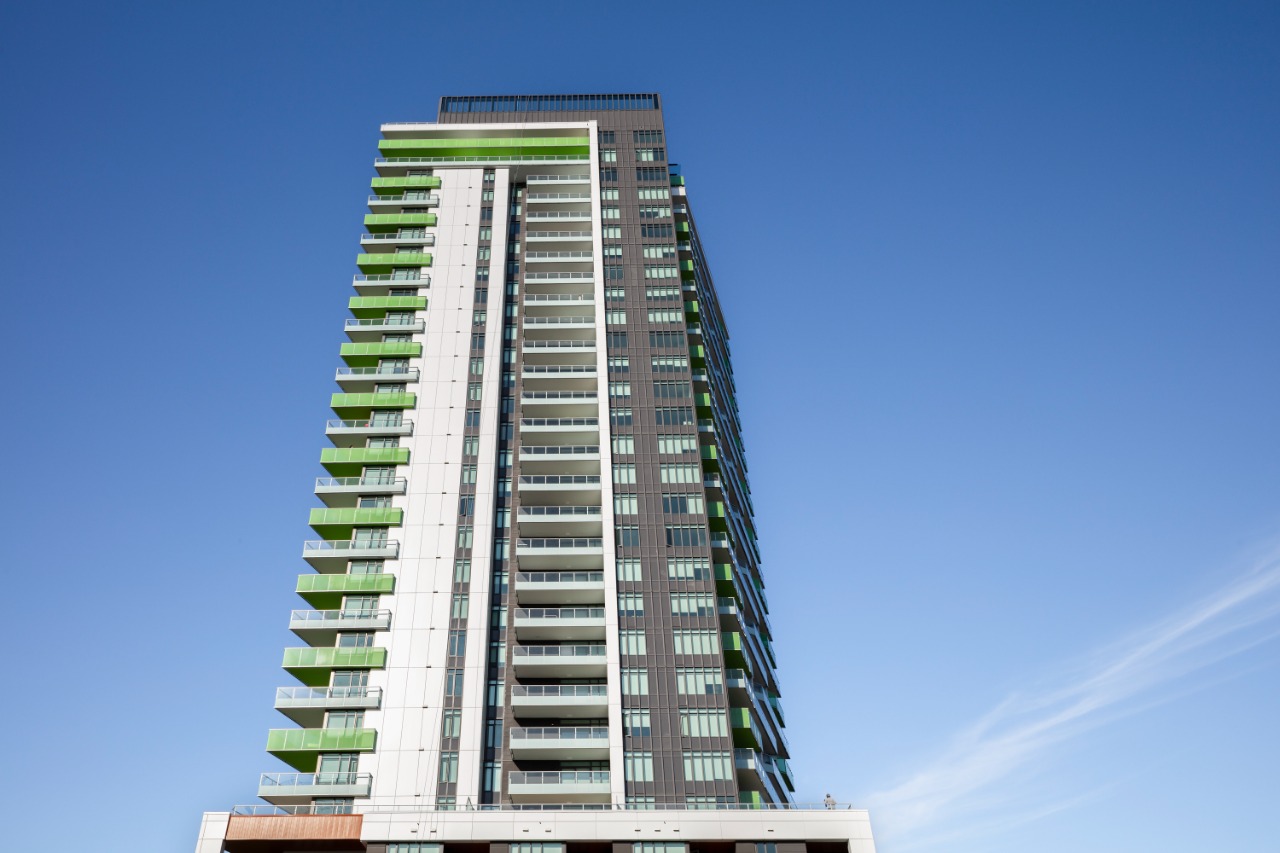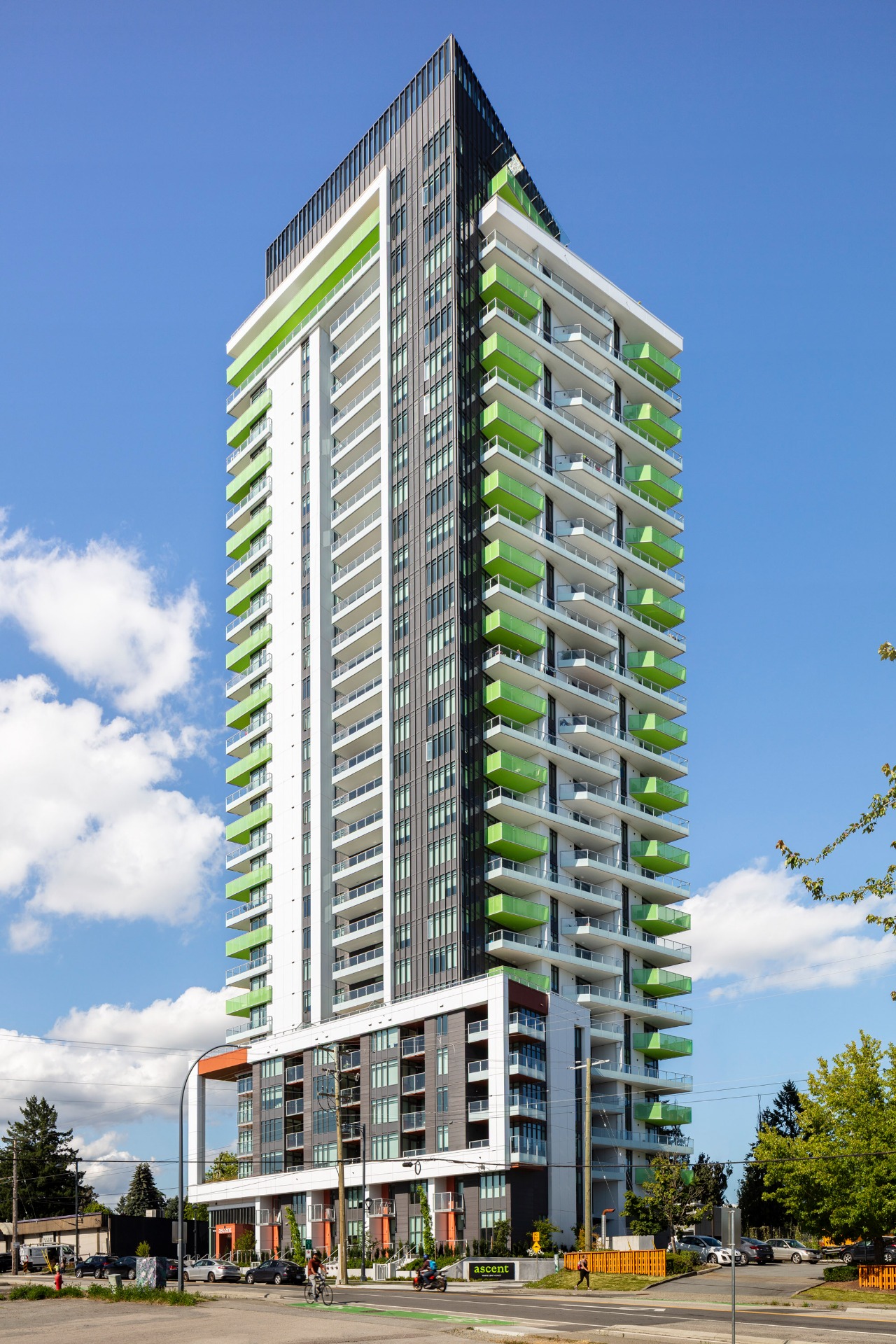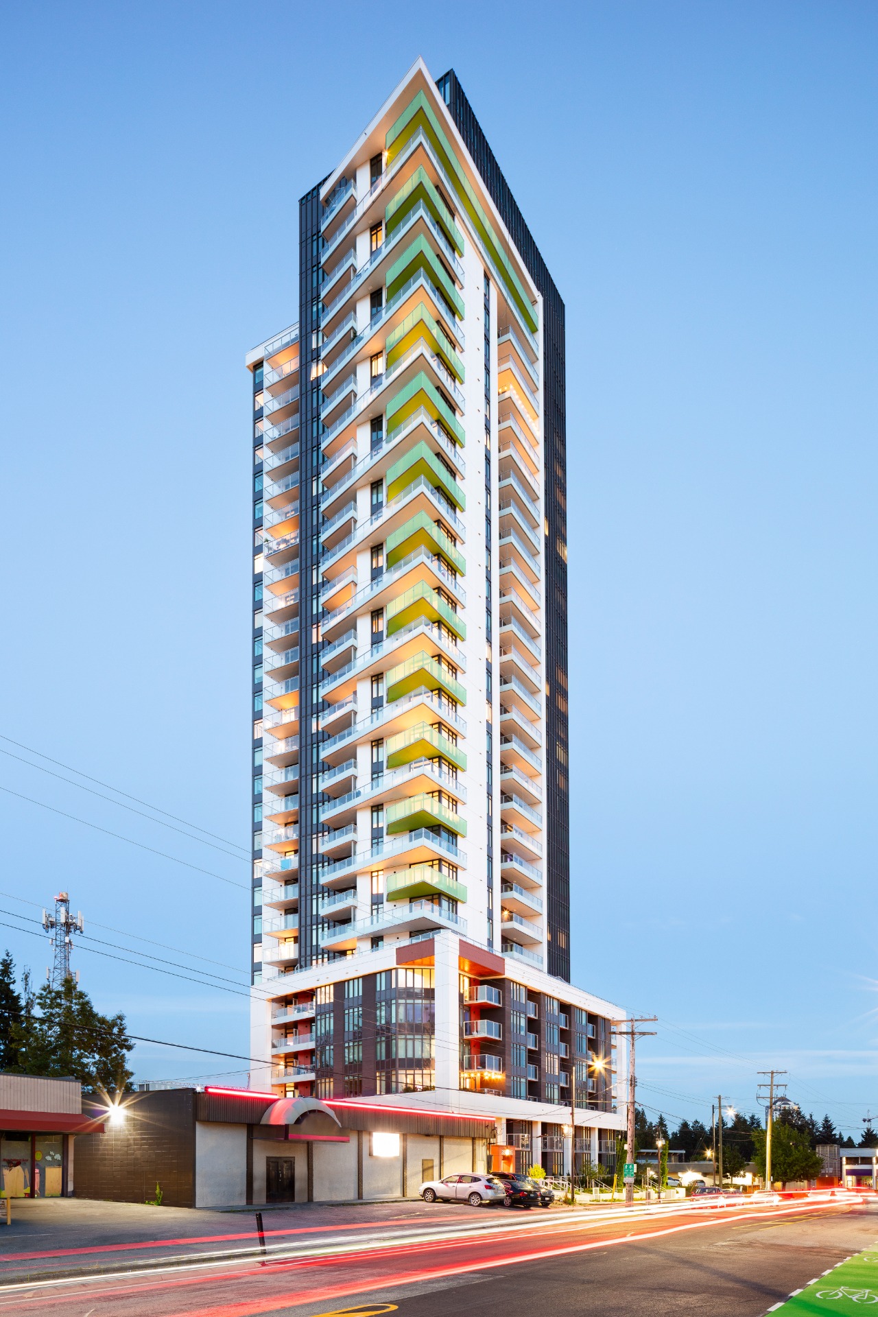 Located within the Surrey City Centre this striking high-rise residential development comes as a first step in the transformation of a light industrial and low-density commercial area into a vibrant, pedestrian-friendly neighbourhood. The project includes 234 market housing units within a 31-storey tower and a 6-storey podium.