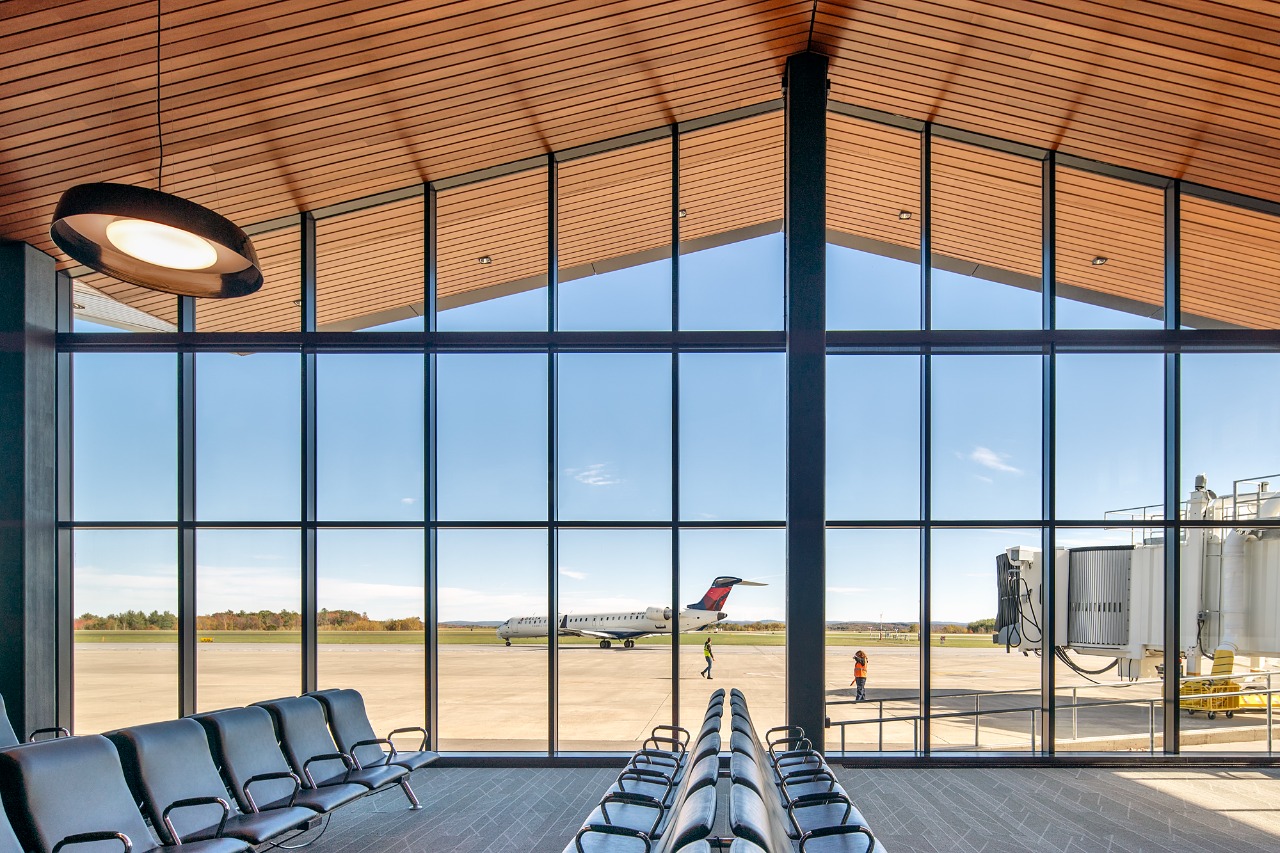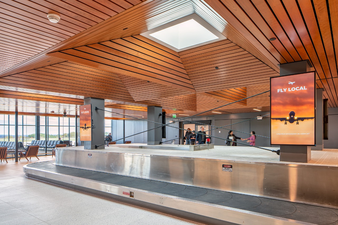 The regional airport, municipally run by Broome County, handles more than 36,000 enplanements each year consisting of both commercial and charter flights. The airport serves a diverse range of travelers, including local and higher-ed communities, tourists, and a growing business sector. The renovation resourcefully ties together the existing structures, seamlessly creating a unique, comfortable, first-class experience that feels intimate for charter and commercial passengers alike.