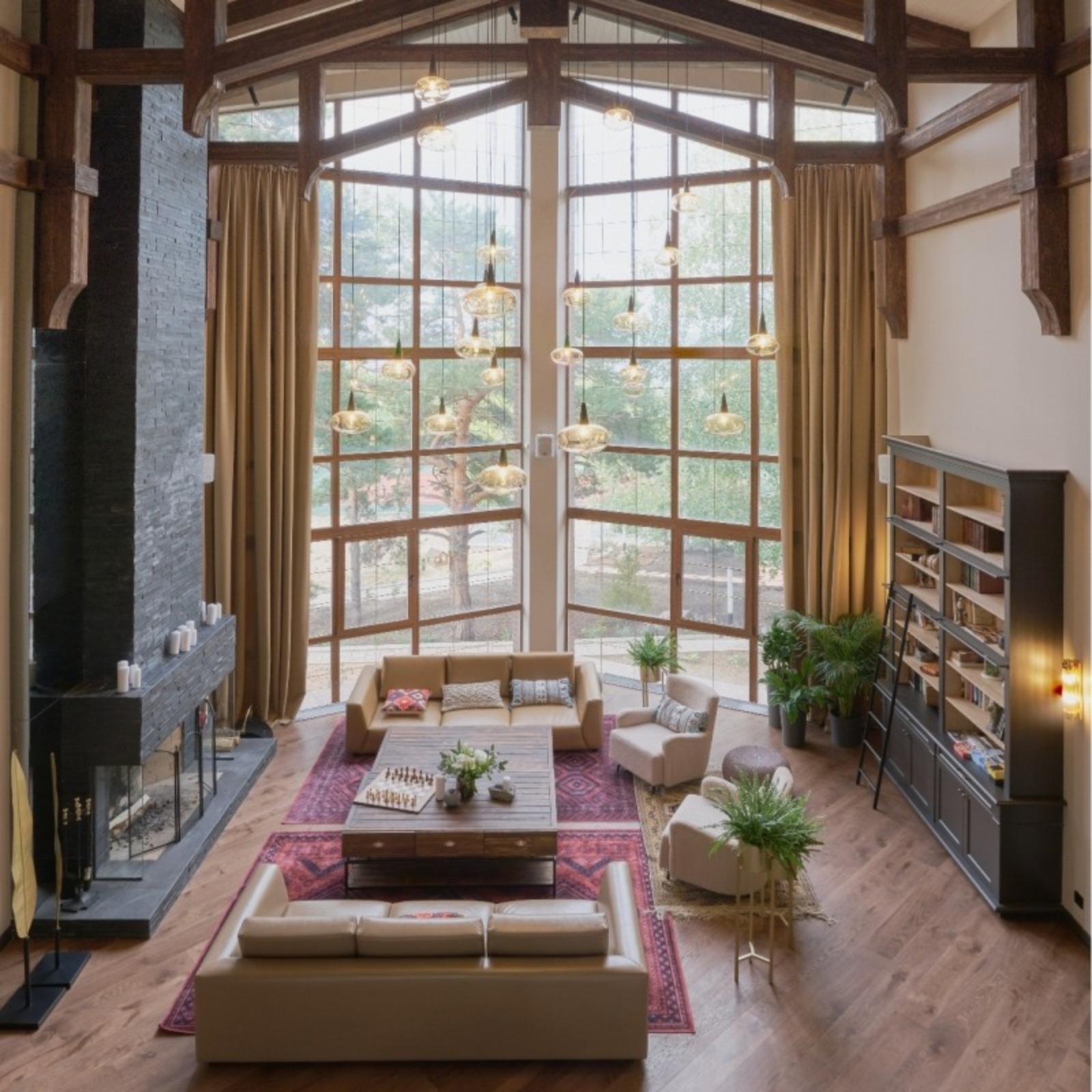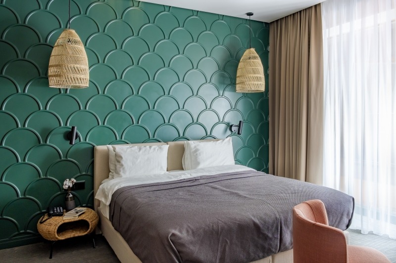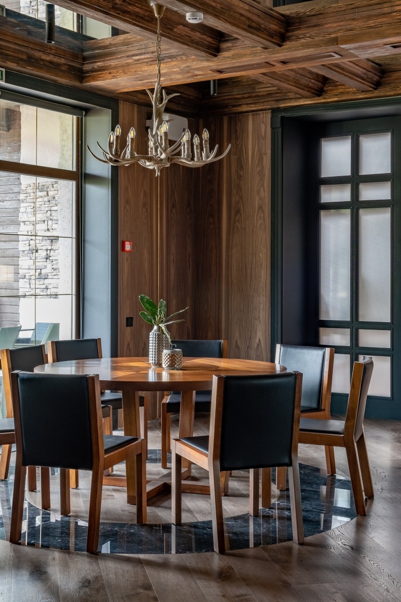 The design is based on warmth, a variety of public spaces, and an engaging use of color. The interiors are dominated by wood and natural stone, complemented by bright handcrafted decorative elements that add energy and create striking contrasts. Spacious layouts, large openings, and expansive windows offer panoramic views of the lake and forest, allowing guests to feel fully immersed in nature from every room.