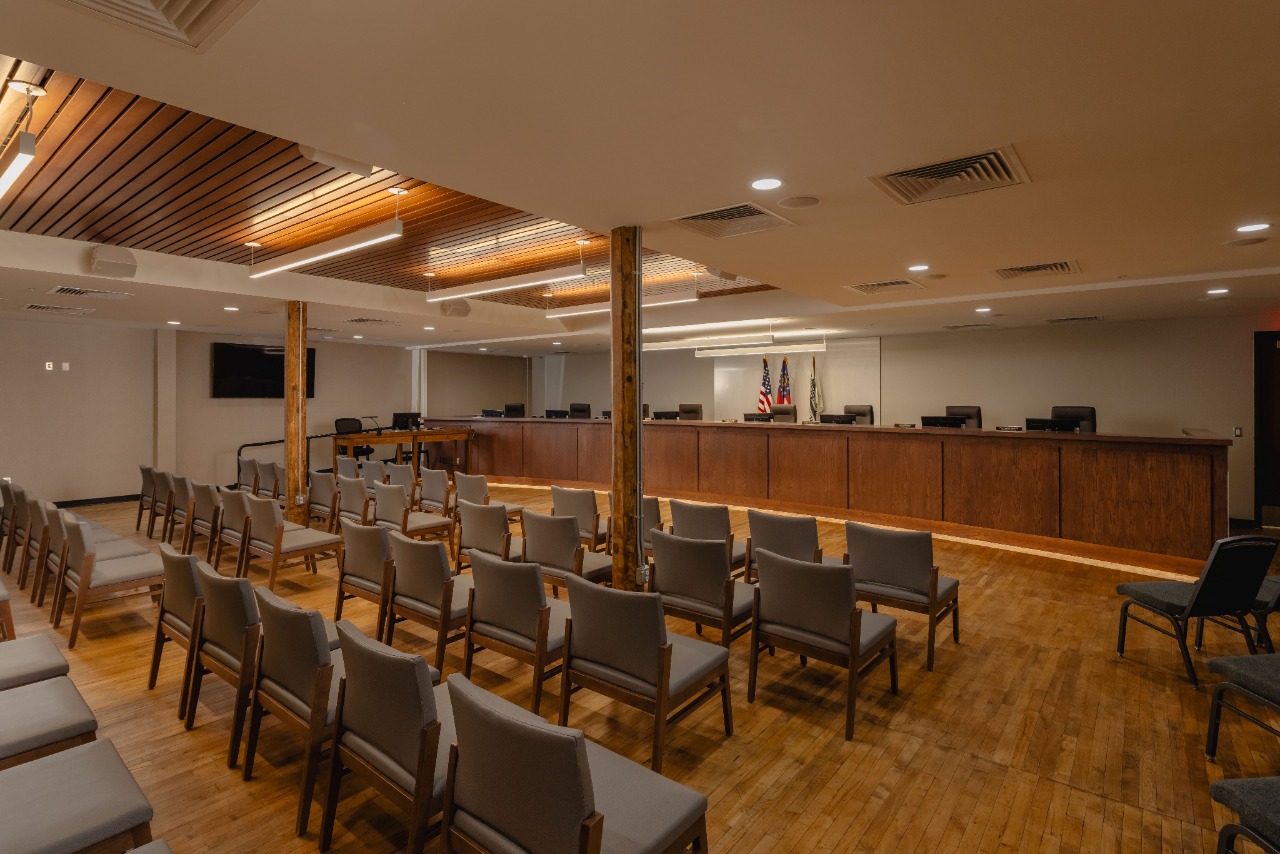 The upgraded event spaces on the ground floor allow the city to be more supportive of the community than before. There is one large event space with various partitions that can be split into multiple event spaces. These event spaces were designed for wedding use, but also for general events, plus an outdoor courtyard. Before the project was even completed, there were weddings already booked for the large event space. It makes the city money and encourages citizens to come downtown and spend money in the area.