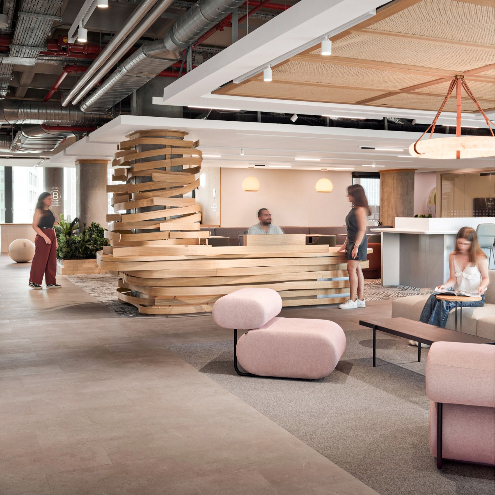 Hilltown introduces a flexible, community-oriented atmosphere. Open layouts, terraces, and social zones encourage spontaneous encounters and adaptable work modes. Nature-integrated design and informal materiality reinforce wellbeing, comfort, and collaboration.