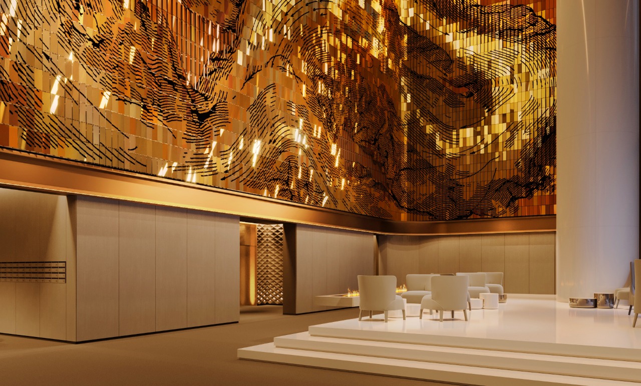 When our architectural studio studied Moscow City as an urban environment, it became clear that the district lacked public-scale artworks with enough conceptual and visual presence to act as cultural anchors. The ambition was therefore not simply to place art inside the building, but to make the lobby an extension of the city itself. From the beginning, the project was developed as a full integration of monumental art and architecture, from concept to technical realization.