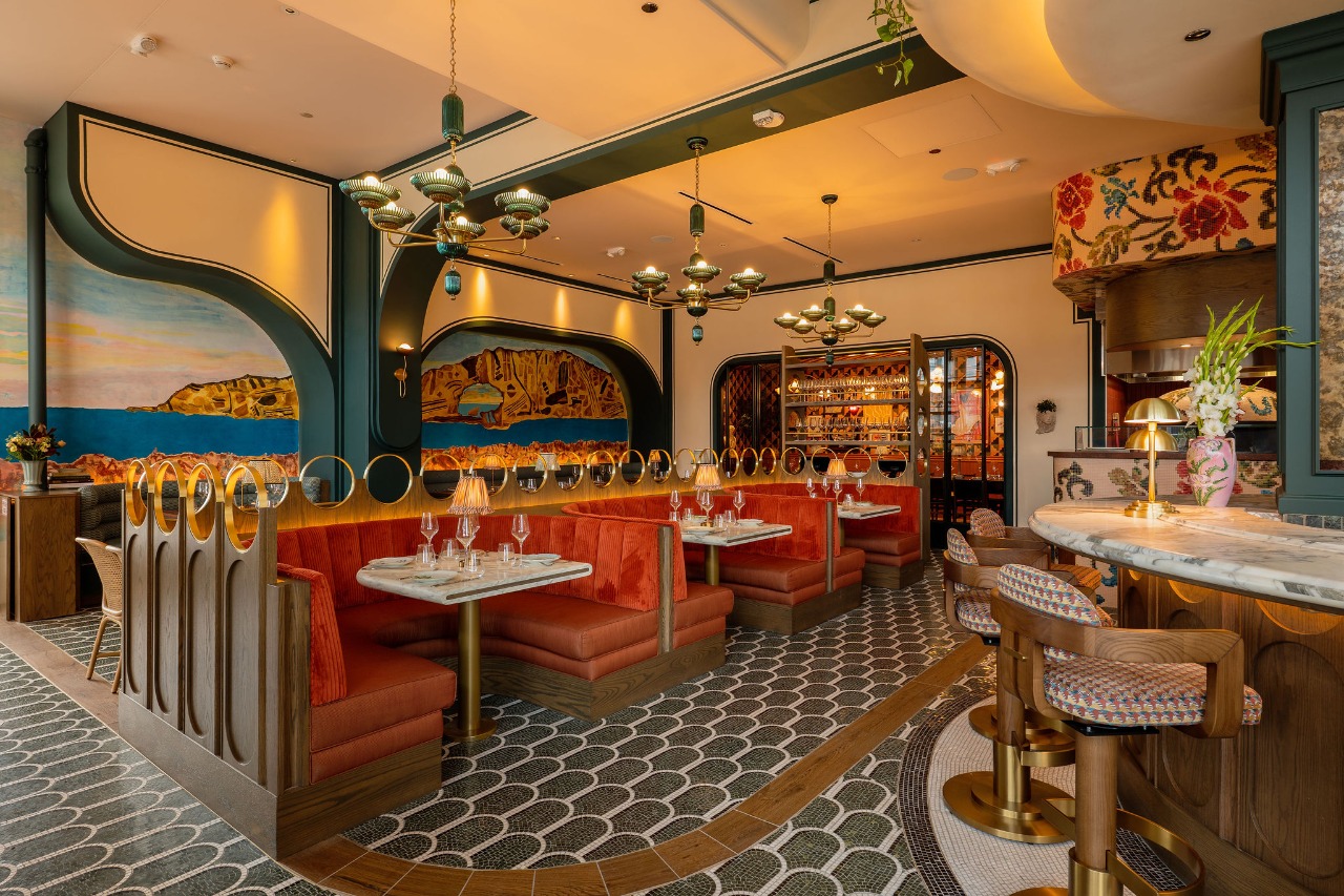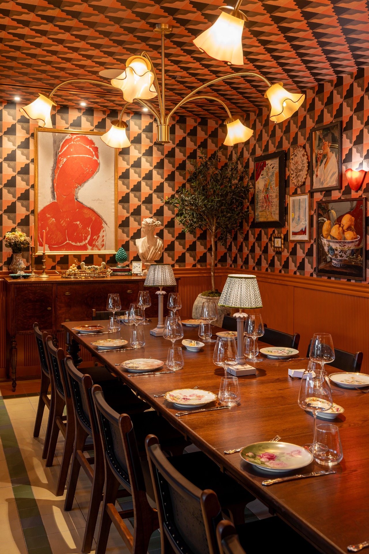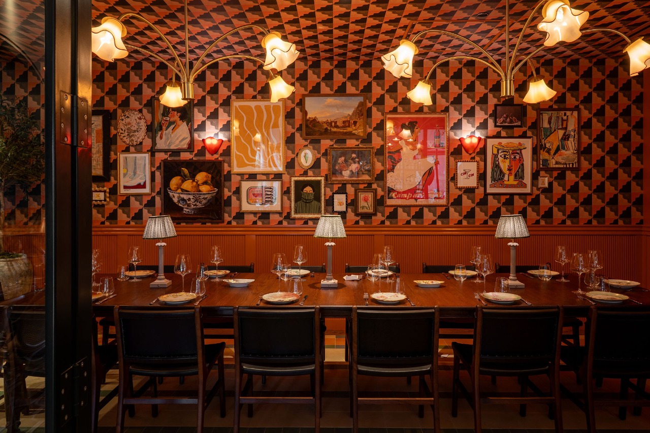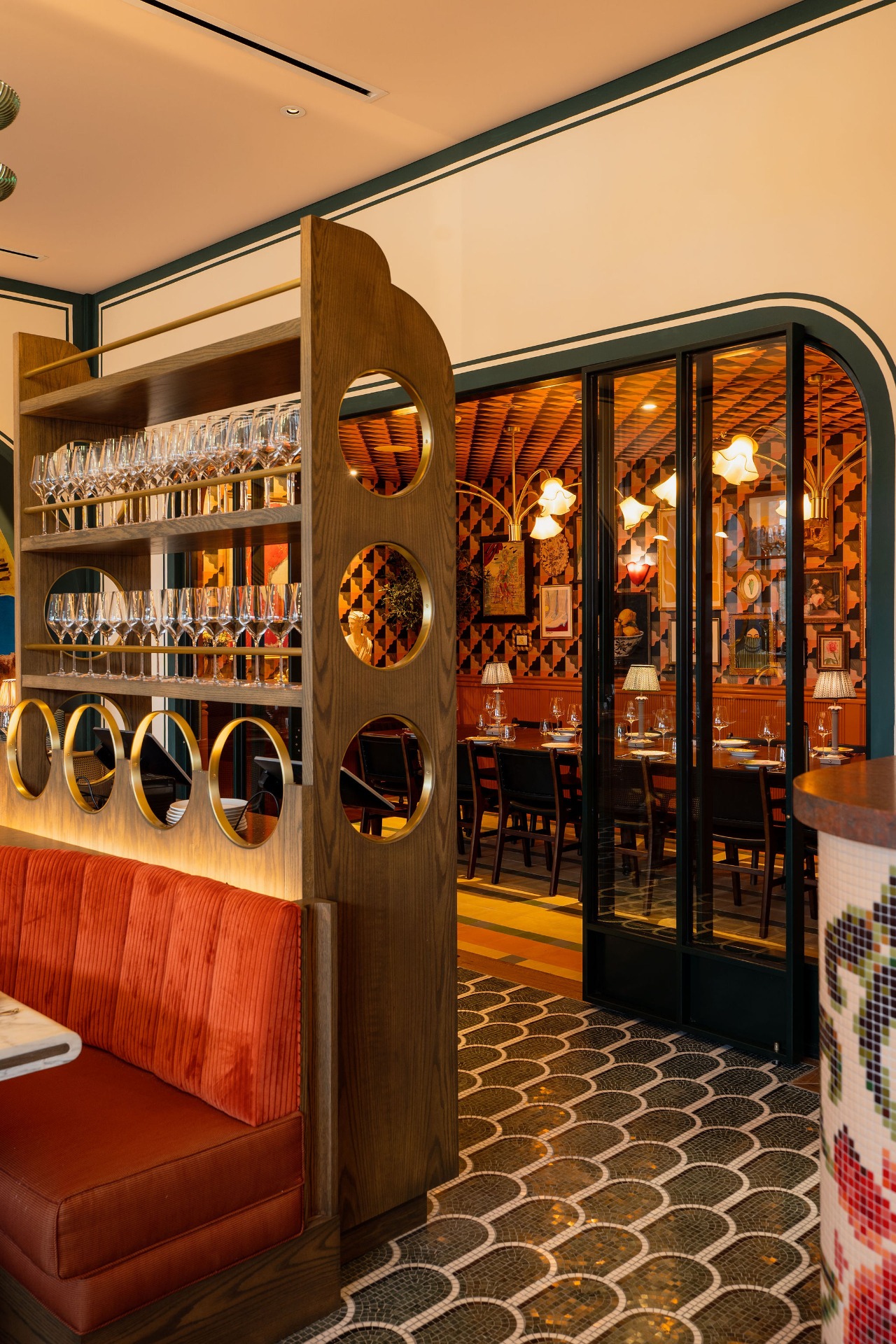 Inspired by mid-century Italian design and a playful sense of “Nonna chic”, Dora Ristorante was conceived as a warm and joyful expression of heritage, hospitality, and family. As the second restaurant from the chef, the space builds on the success of the first while deepening the personal story behind the cuisine. The interiors reinterpret classic Italian café culture through a contemporary lens, layering playful patterns, rich color, and hand-painted details to create an atmosphere that feels expressive, inviting, and full of character.