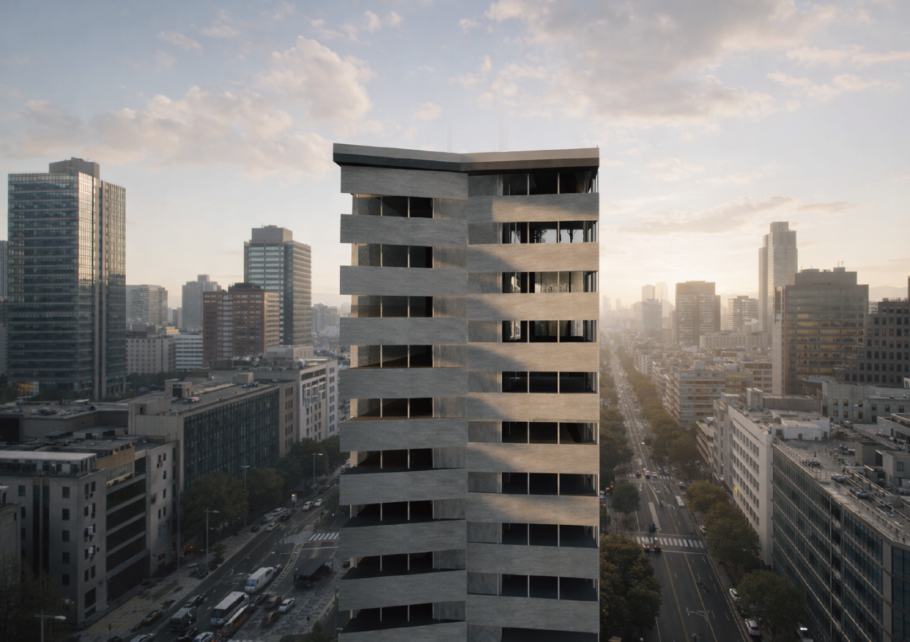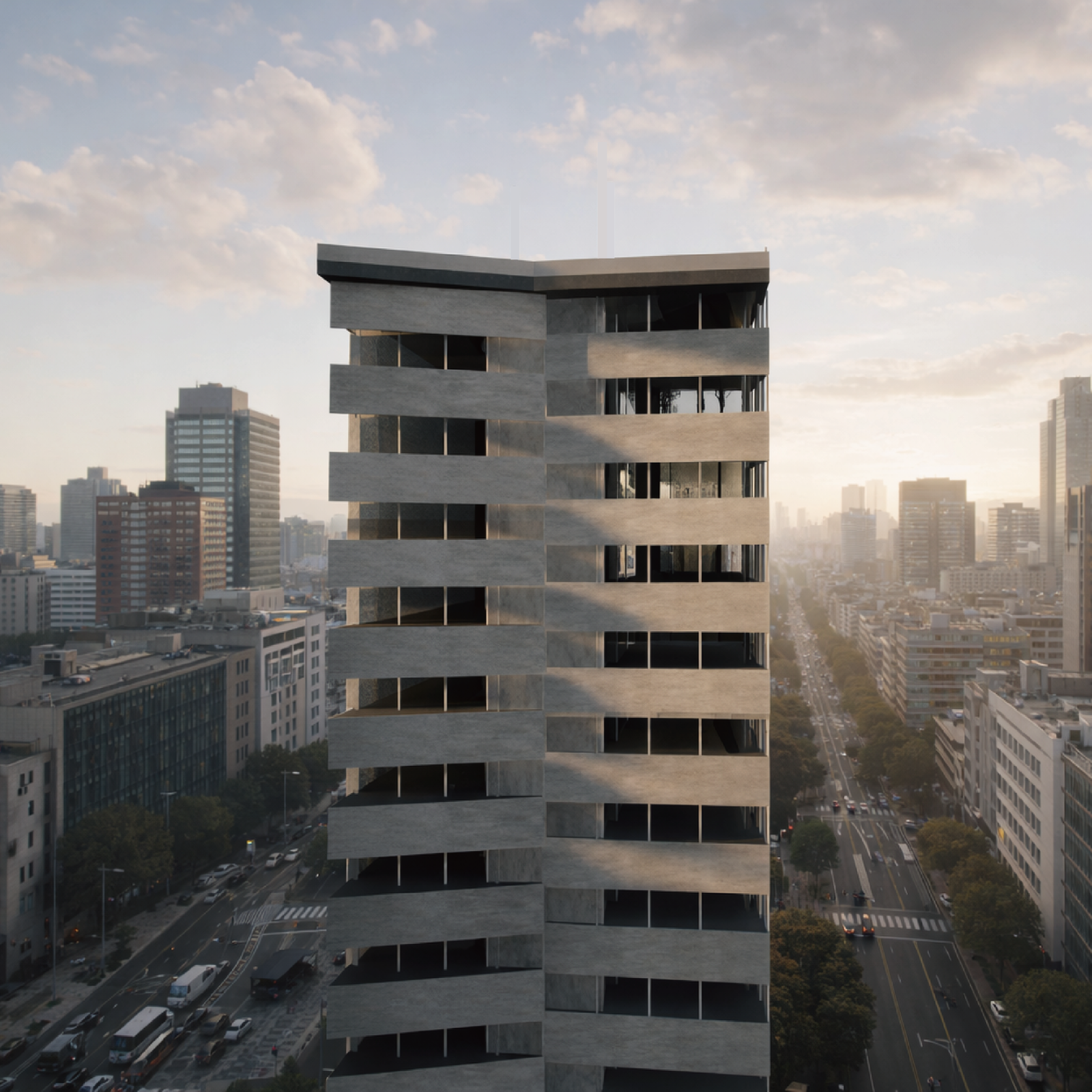 Double Face explores how architecture can respond to mixed-use programs through façade articulation, circulation strategy, and spatial sequencing, rather than a unified formal expression.