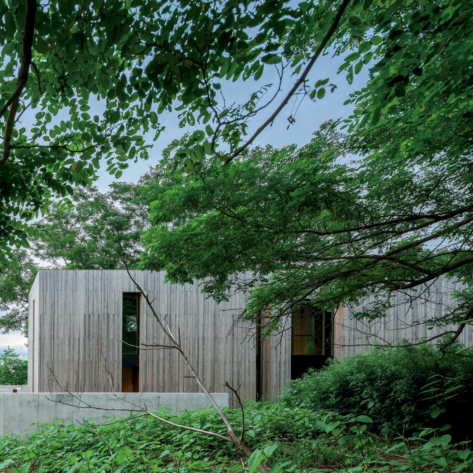Forest Archetype is a private residence located on a mountain foothill in suburban Sapporo, Hokkaido. The site overlooks distant ranges stretching from Mt. Pinneshiri to Mt. Shokanbetsu and is bordered by a dense forest that transforms dramatically with the seasons. Rather than placing a discrete architectural object within this landscape, the project seeks to operate as a spatial extension of the forest itself.