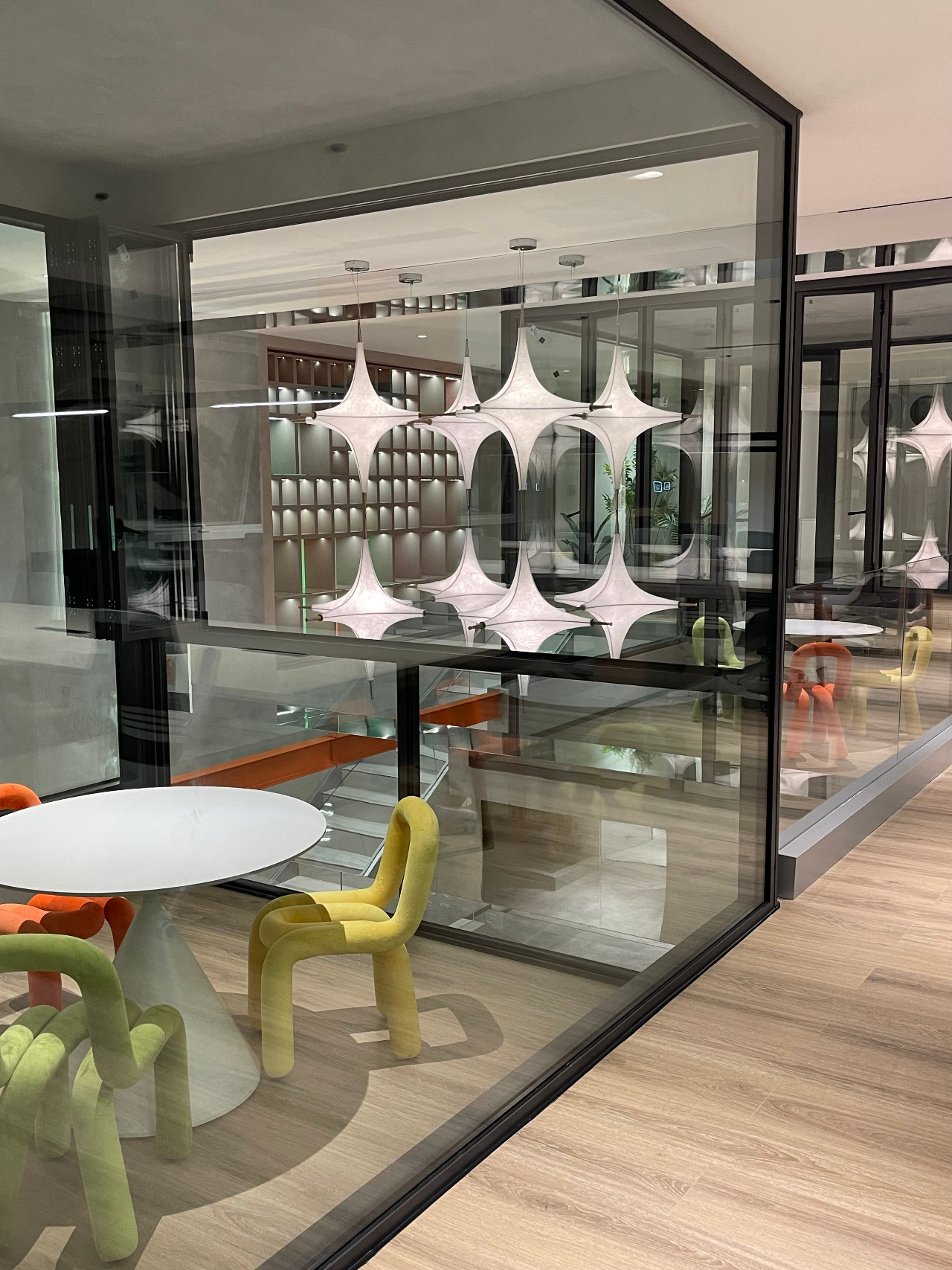 Orange, as the primary brand color, is thoughtfully applied throughout the space, extending from the first-floor lobby to workstations and furniture across all levels. This injects the space with energy and inspiration while maintaining a professional tone. The use of light-permeable glass bricks, playful IP display platforms, and abundant fresh greenery cultivates a breathable “plant-healing space” that harmonizes trendy toy aesthetics with workplace functionality.