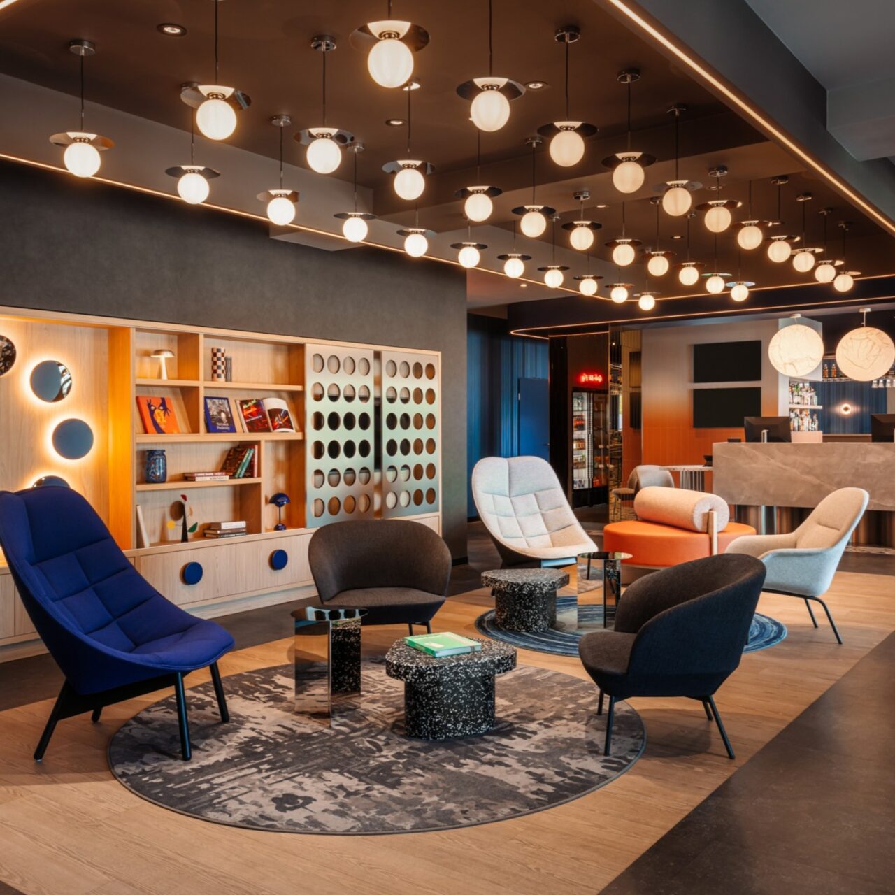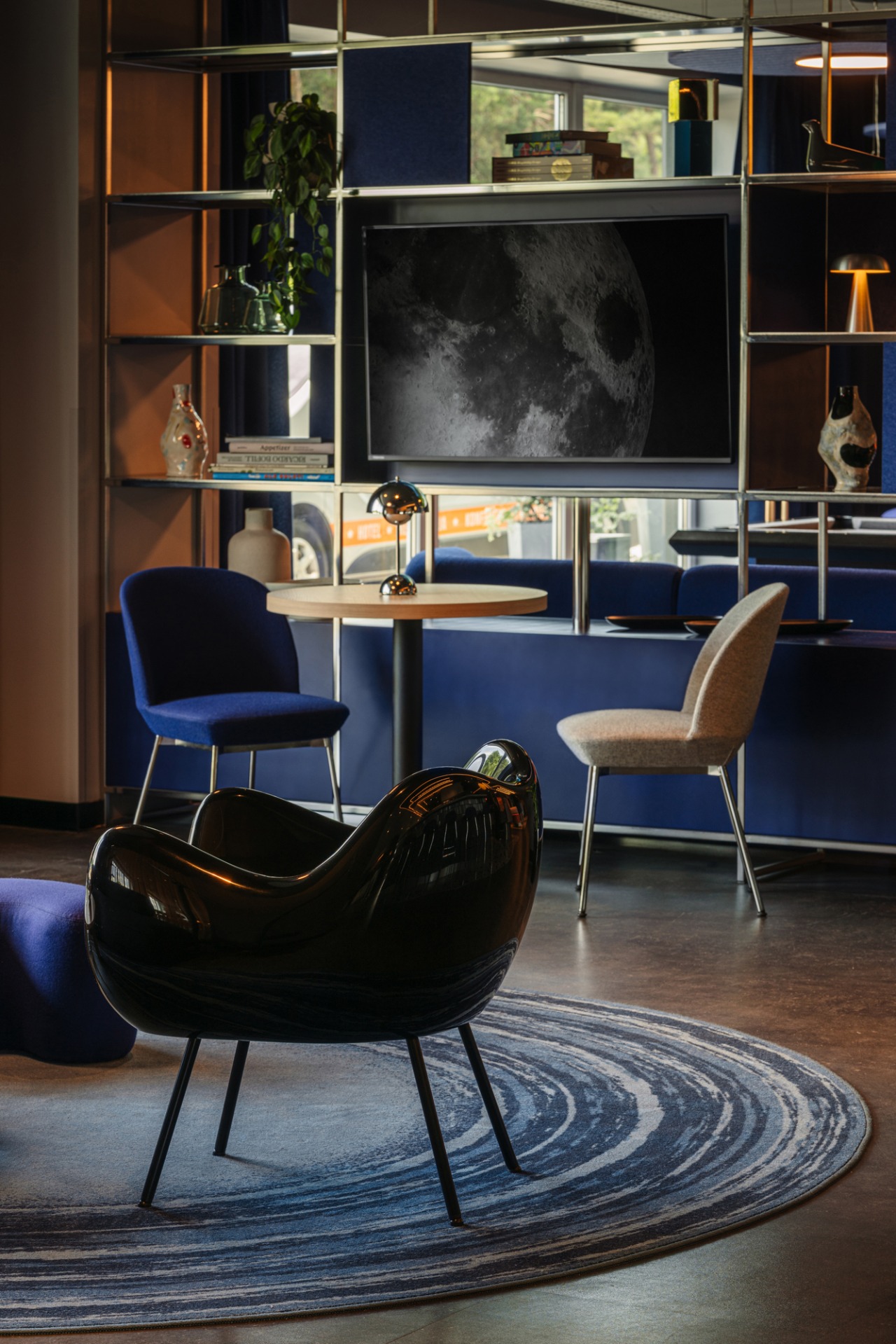 “Fly Me to the Moon” is the narrative framework for the new interior concept of Ibis Styles Katowice Airport. Inspired by Frank Sinatra’s song, the project explores the idea of cosmic travel, freedom and boundless imagination. From the first step inside, guests enter a spatial story that evokes departure, anticipation and the romance of the journey.
