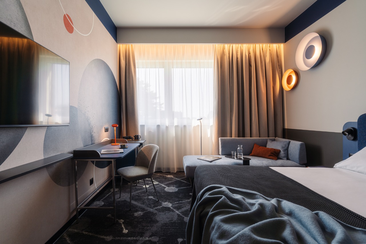 Located at the rapidly developing Katowice Airport, focused mainly on charter flights, the hotel acts as a gateway to holidays and rest. After years of operation, the investor introduced a second hotel brand. A completely new guestroom wing was built, while the existing public areas underwent a full transformation. The original ground floor layout no longer met contemporary expectations, creating a rare chance to redefine the interior structure within the existing building.