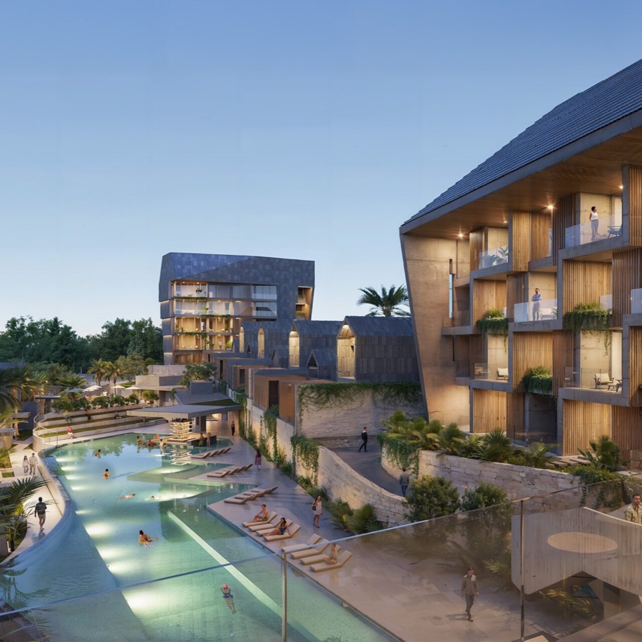 The recently developed Phase VI introduces a range of new accommodations, including apartments, penthouses, and townhouse-style villas. These are organized around a vibrant courtyard anchored by a flowing pool, swim-up bar, and open-air restaurant, establishing a central hub of activity within the resort. The architectural language of Karma Kandara continues to evolve while remaining rooted in Balinese vernacular traditions, with careful attention to form, spatial sequence, and material expression.