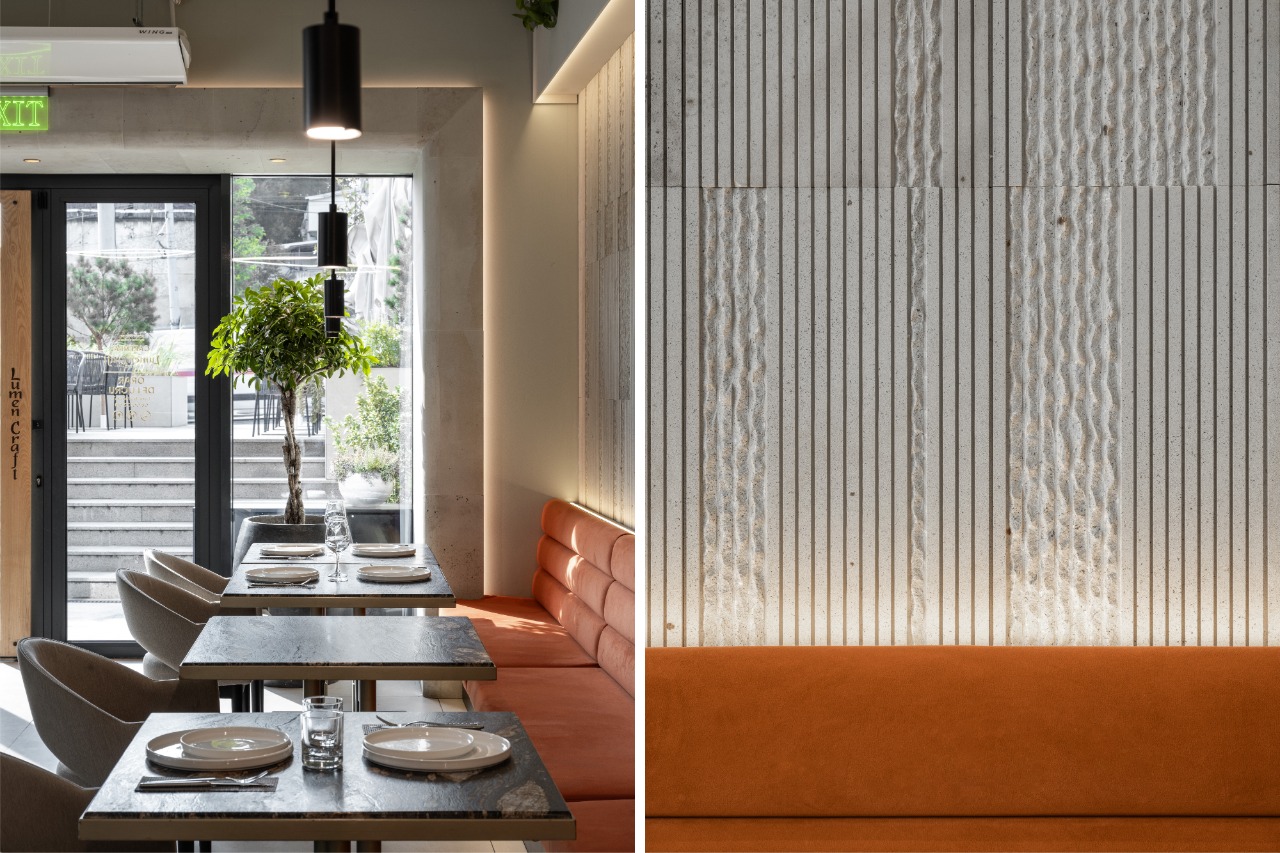 Lumen Craft Gastro, located on M. Viteazul Street in Chișinău, offers a new interpretation of the Lumen Craft brand. The project integrates natural light, Cosăuți stone, and custom details, creating a contemporary urban space where visual and sensory experiences merge harmoniously.
