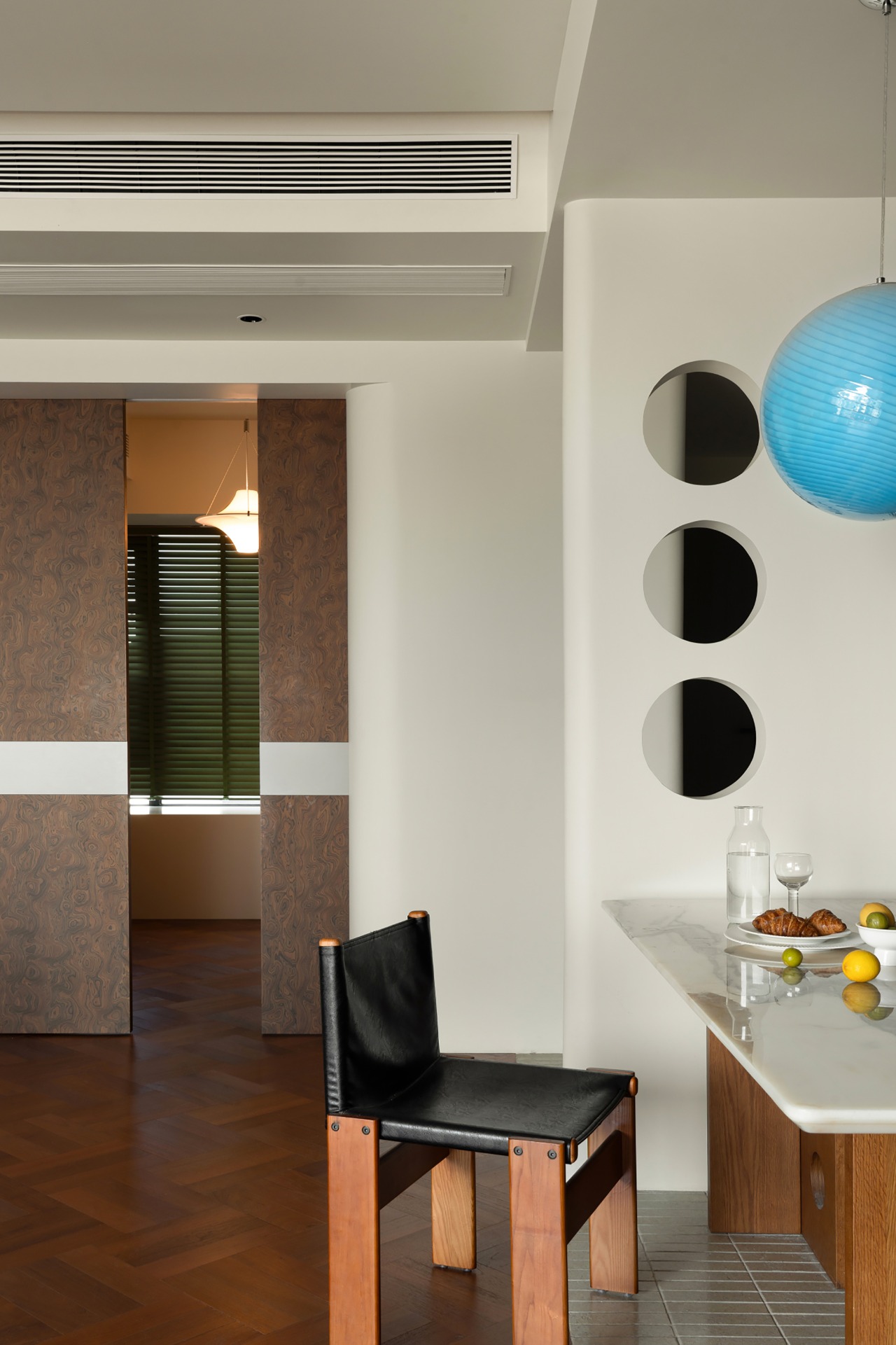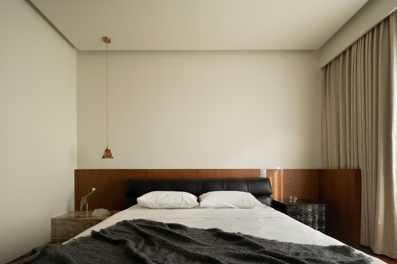 Simultaneously utilizing wood grain, natural marble, glass bricks, metal, and artistic coatings to create material collisions, coupled with classic soft furnishings, exudes a relaxed atmosphere in the space.