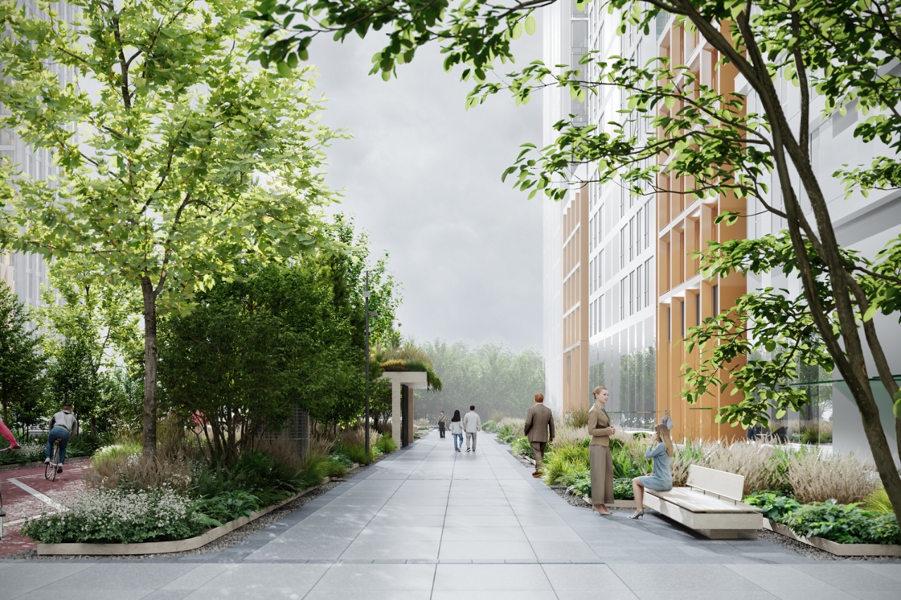 The task set by Mayor Sergei Sobyanin and Chief Architect of Moscow Sergei Kuznetsov is ambitious: to create a pilot microdistrict with advanced improvement standards, which will become the prototype of the My Street 2.0 program. The main principle is a “city for life,” focused not on an abstract resident of a metropolis, but on a real person: a pedestrian, cyclist, public transport passenger or a guest leaving the metro. It was important to first see the improvement, understand how the comfort of the townspeople will be built into the new environment, and only then proceed to the architecture of the district buildings. It was from an “eye view” – and not from a bird’s eye view – that each decision in the landscape was evaluated.