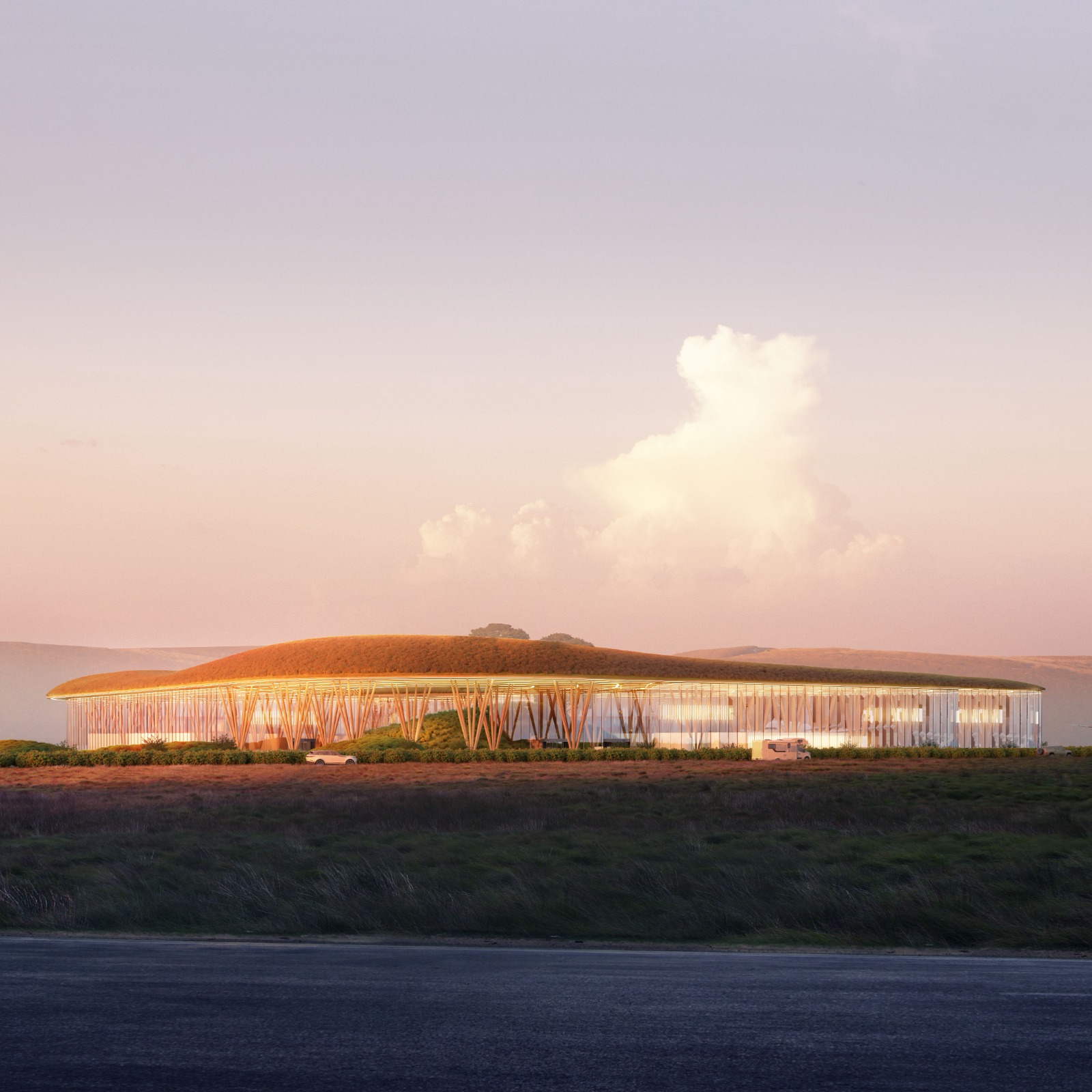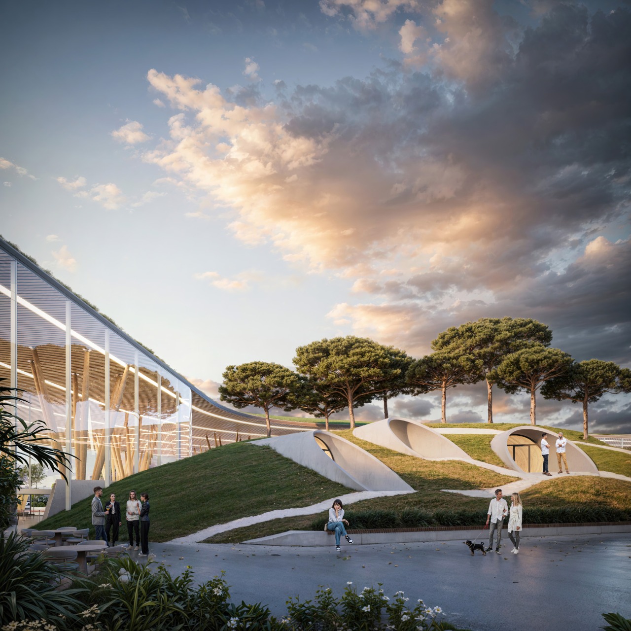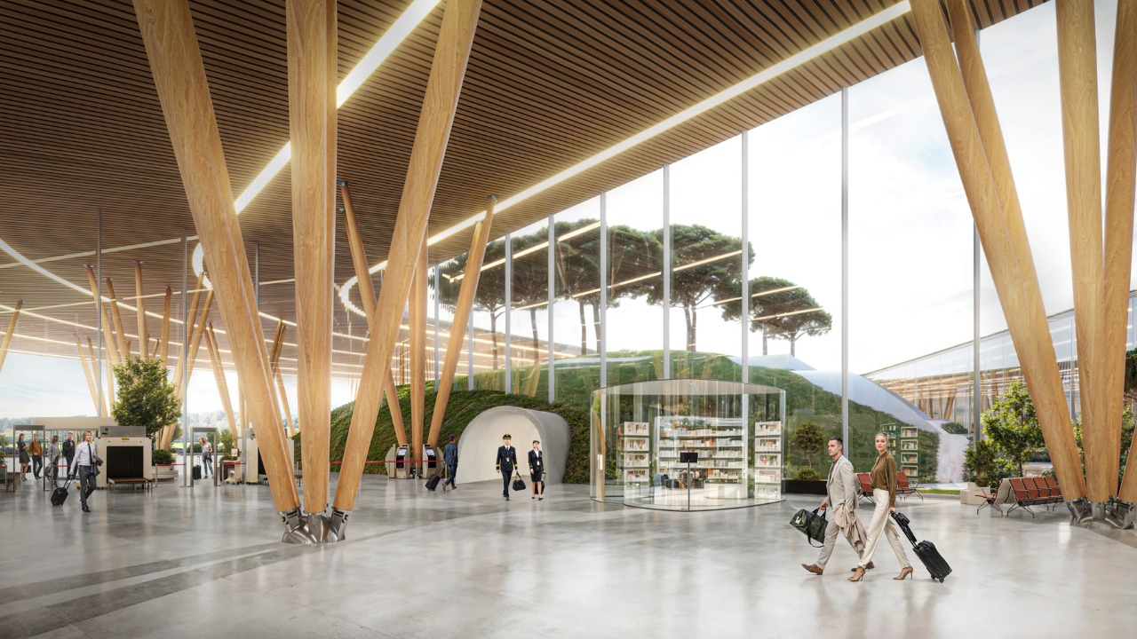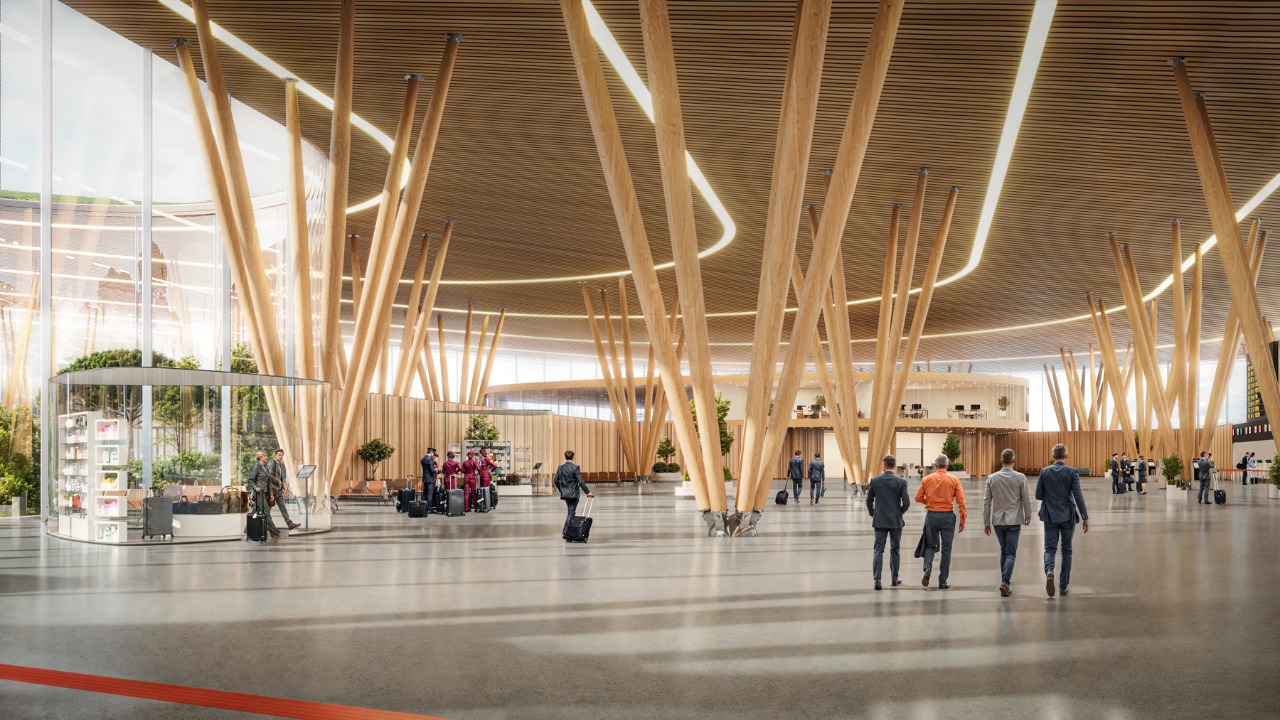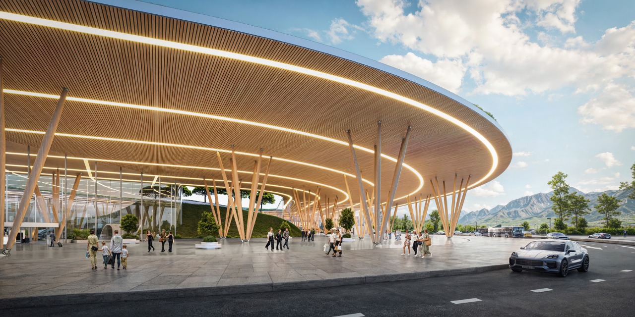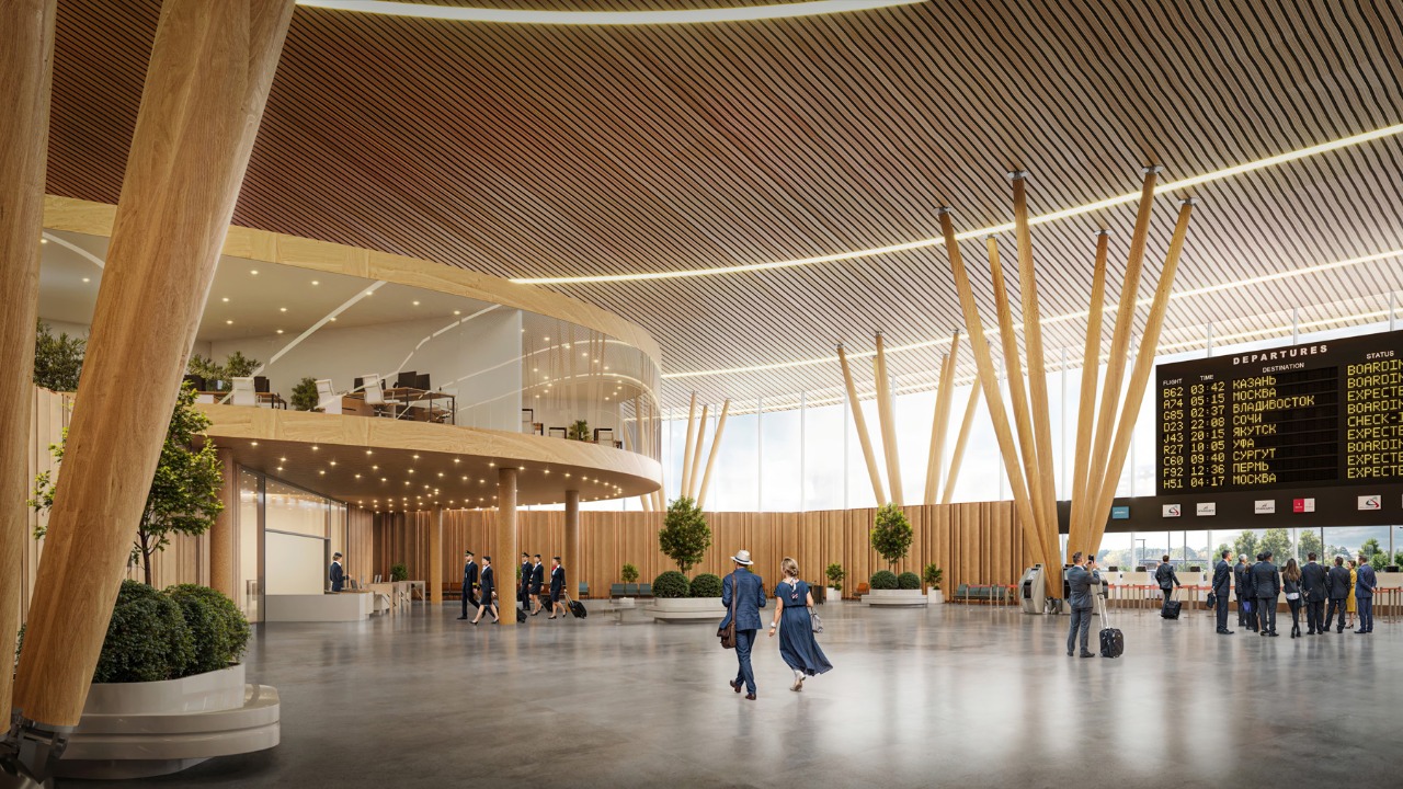 “We wanted to create not just an airport terminal, but a gateway to the mountains that will leave passengers with vivid impressions from the first minutes of arrival. The shape of the terminal, the green roof, wooden columns resembling pine needles, and the internal atrium with a hill of fir trees emphasize the connection with the nature of Arkhyz. Our project is a symbiosis of modern infrastructure and the special atmosphere of the place,” — said co-founder and chief architect of our architectural bureau.