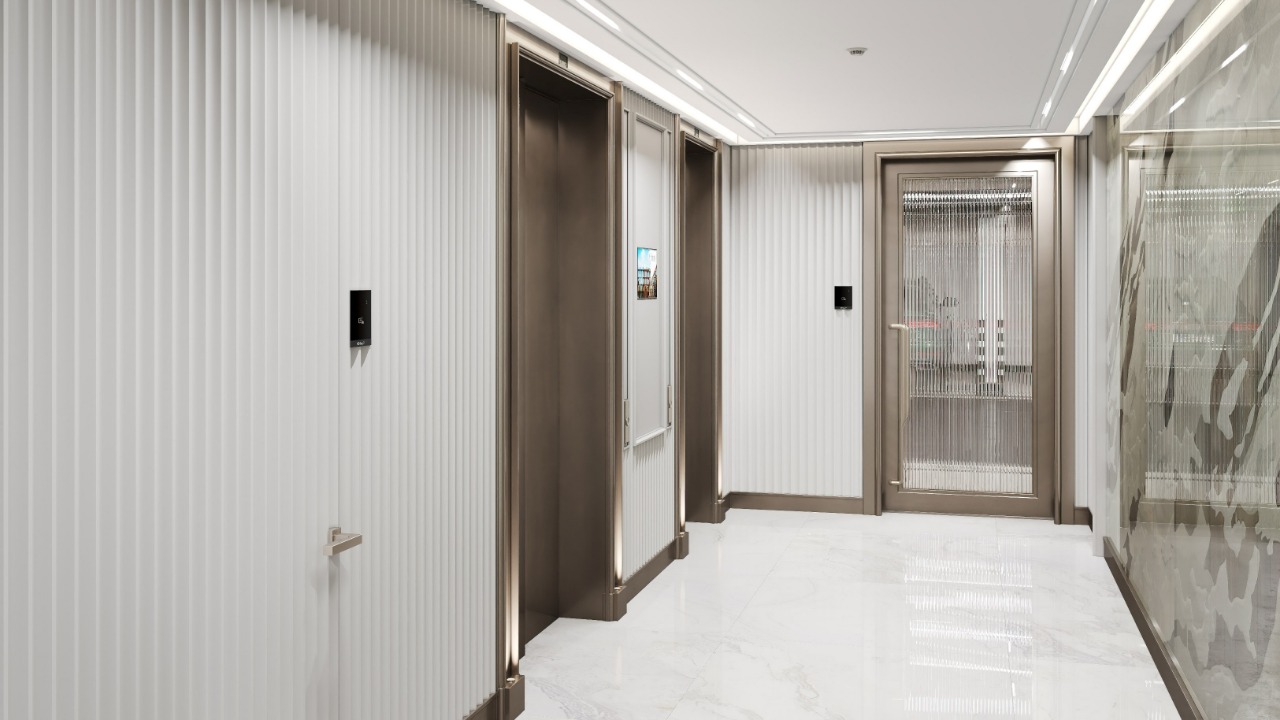 Everything in the house is beautiful, even behind the scenes: the emergency staircases and halls are stylishly designed. The grand, refined lobby with designer upholstered furniture is finished in expensive materials, including rare types of marble, brass, and bespoke decorative elements made of metal, plaster, and glass. It is a comfortable place to enjoy a coffee or take it to go. The house also features a comfortable waiting area, a guest restroom, and storage rooms for prams and bicycles.