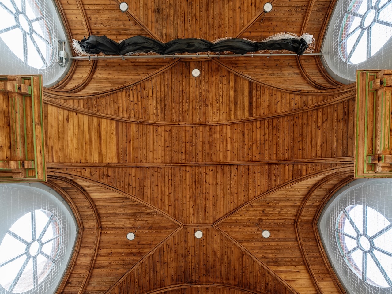 Conservation studies were conducted to identify the original colour scheme of the historic ceiling. Stratigraphic research enabled the accurate reconstruction of the original neo-Gothic palette, restoring the spatial identity and historic atmosphere of the interior.