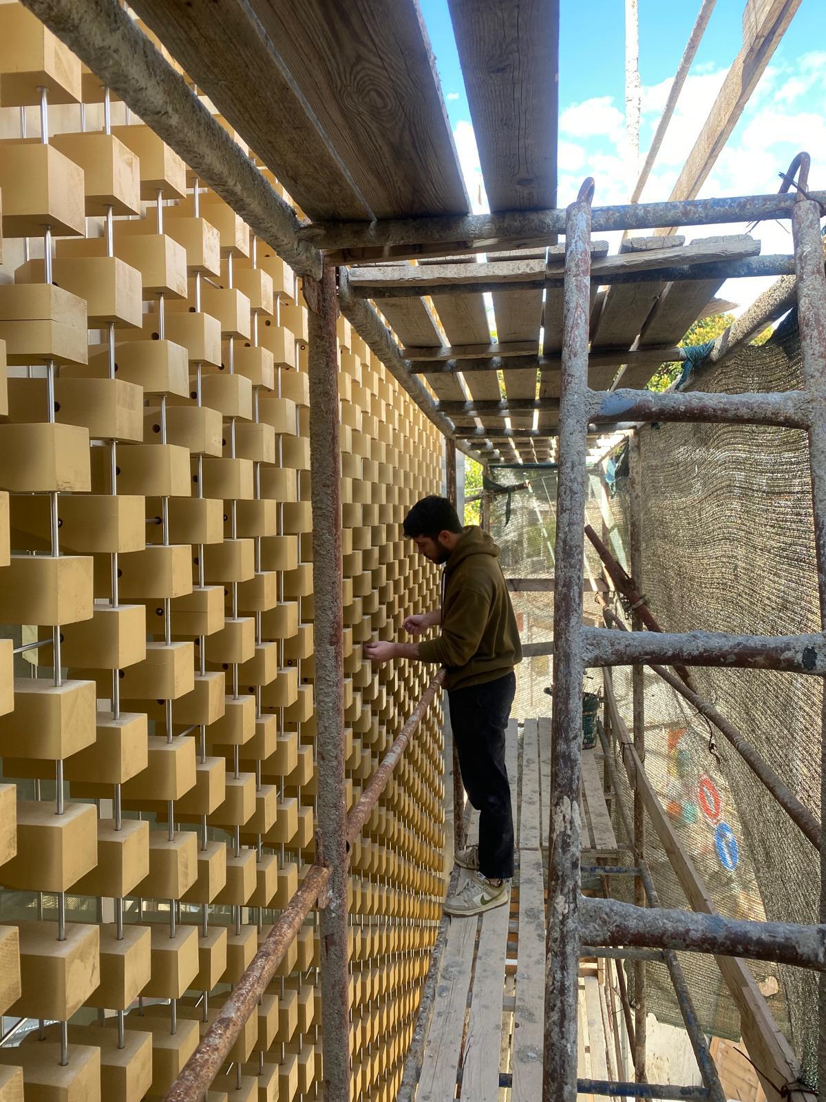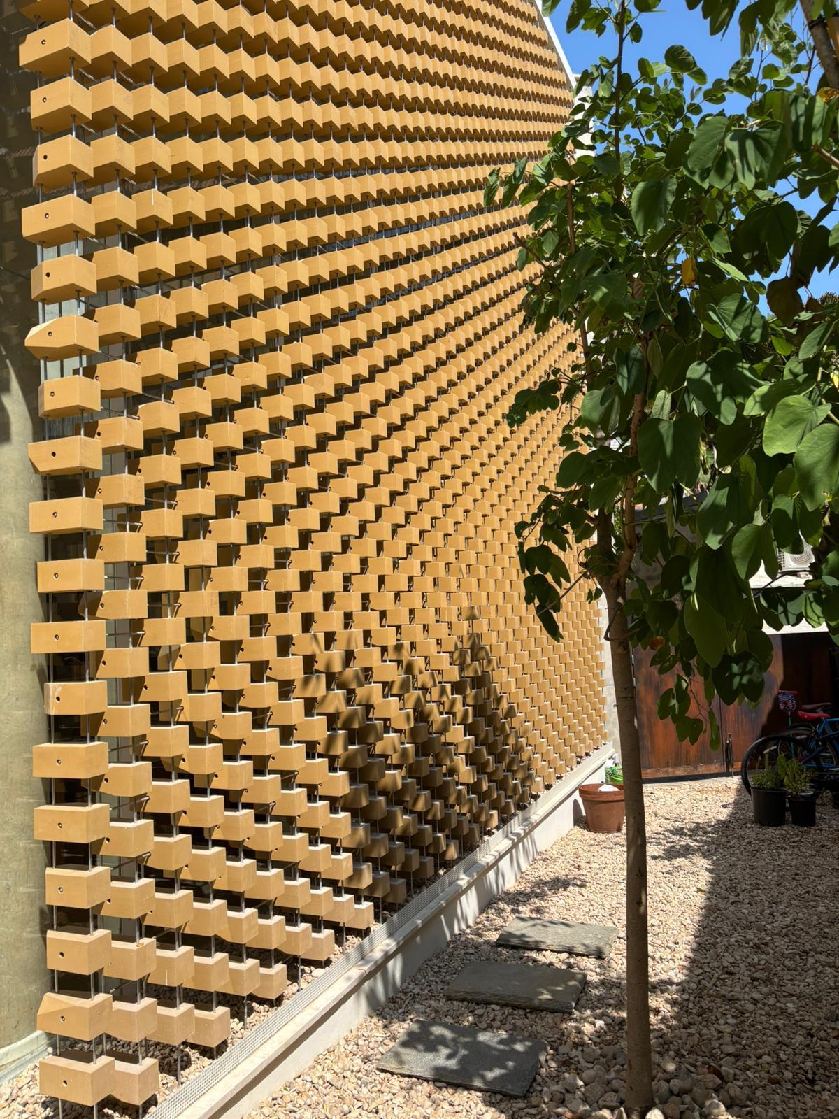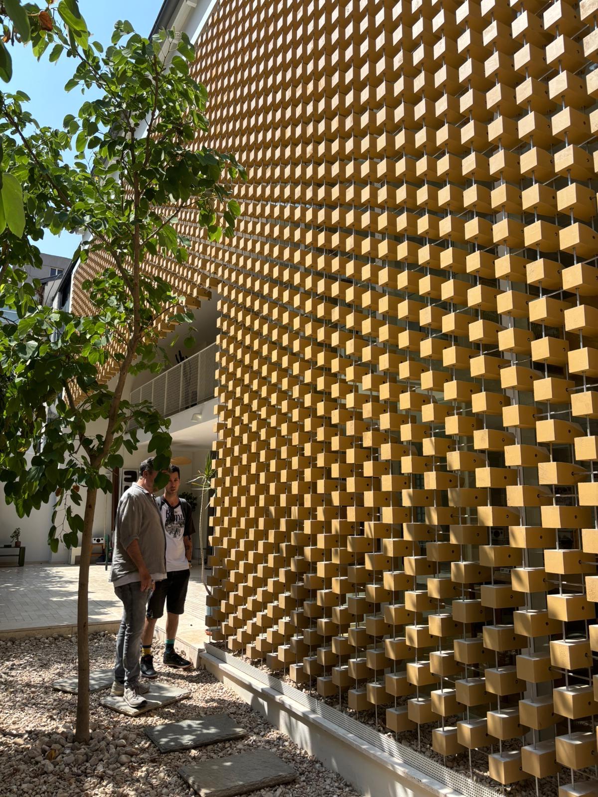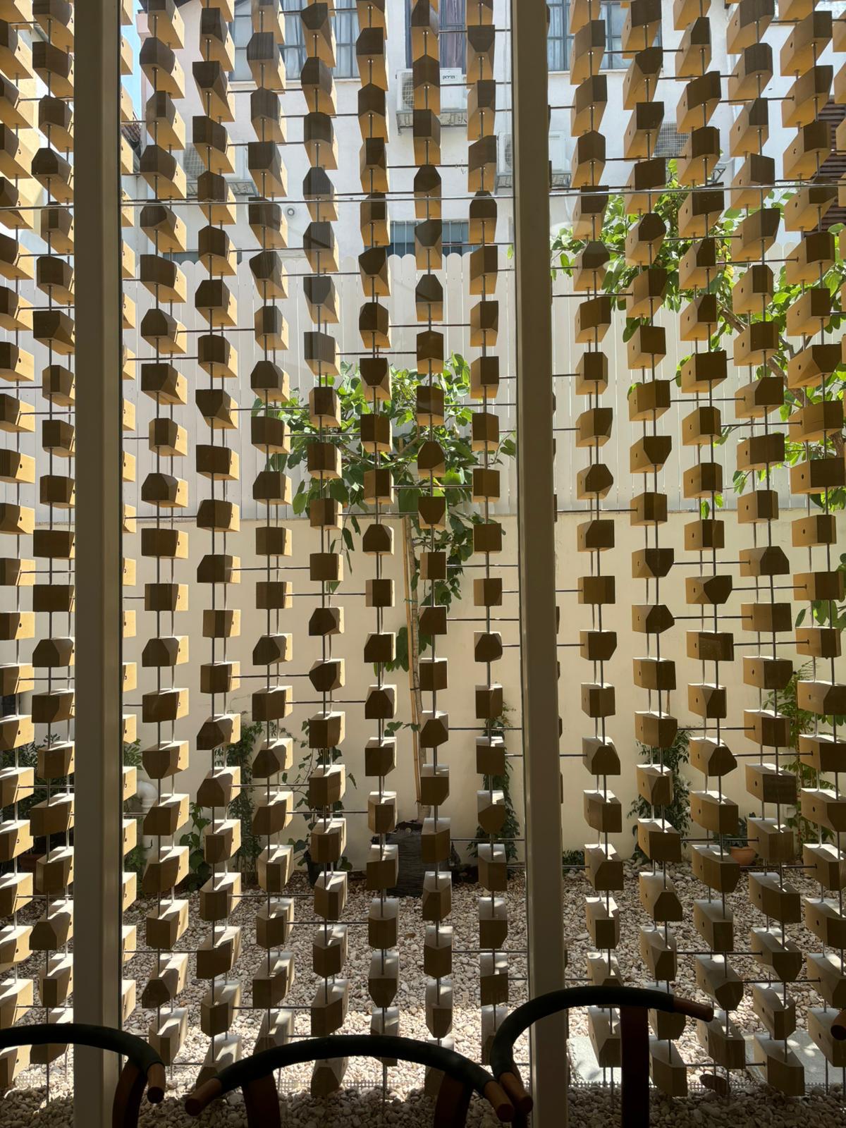 Conceptually, the project draws inspiration from Japanese aesthetics, particularly the notions of Wa (harmony) and Ma (the space between things). These ideas guided the balance between order and randomness, fullness and void, structure and light. The seemingly irregular inner cuts of each cube evoke an organic rhythm, where shadow, air, and silence become part of the composition. Through this approach, Secondskin becomes not only a functional shading device but also a poetic expression of spatial harmony and crafted precision.