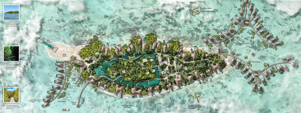The project was developed in close collaboration with experts in biology and hydrology, ensuring that every path, amenity, and villa is enriched by a state of peaceful coexistence with the environment. Nature is not decoration; it is a source of life and meaning. By protecting nature, we ultimately protect ourselves. This cycle is essential and must be respected. For example, the roots of the preserved mangroves not only provide breathtaking views but also protect the cay from hurricanes and erosion. Through the union of artistic vision and scientific rigor, complex challenges are resolved with clarity.
