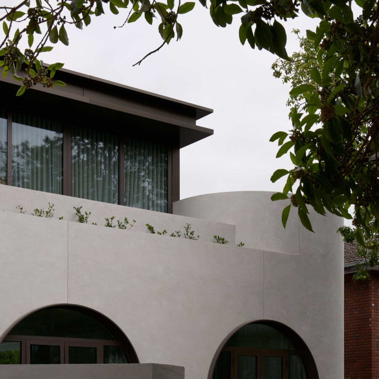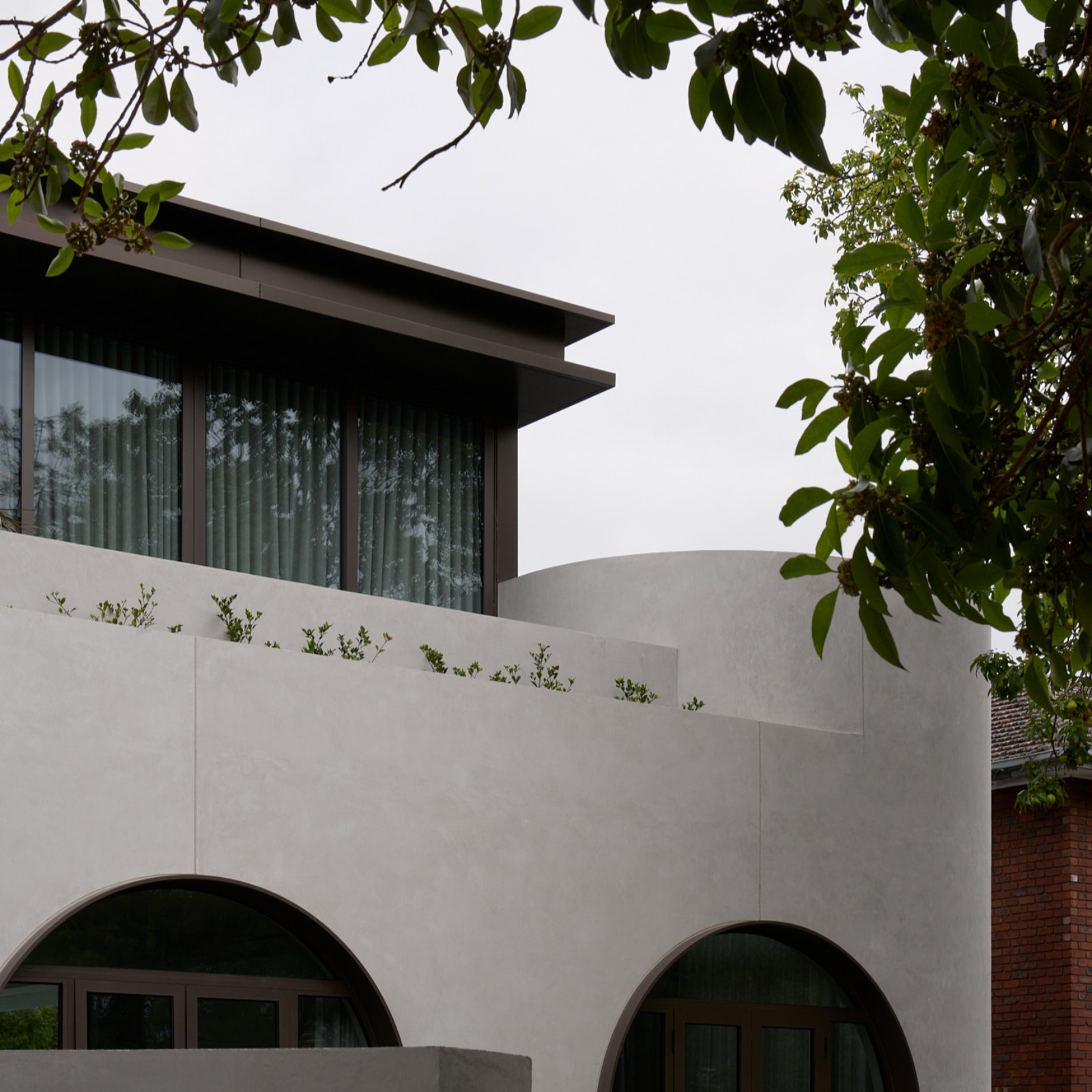 An arched entry draws you inward as the city gives way. At the center, a shared clearing anchors the home, gathering two wings, one devoted to retreat and the other to communal life. Circulation revolves around this pause, allowing daily routines to cross without friction and giving the house its quiet cadence.