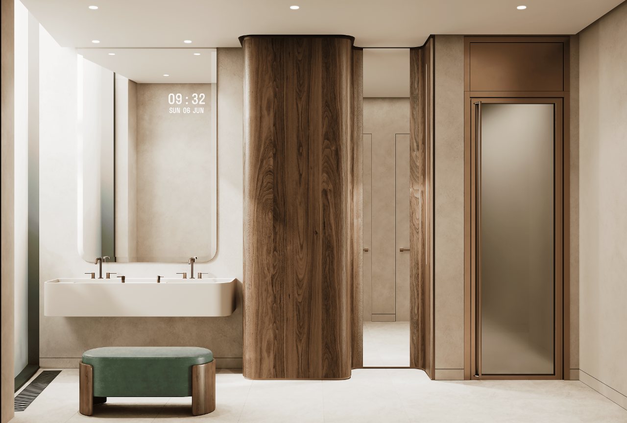 Every space has been designed down to the finest detail, from functionality to visual solutions. The design emphasizes natural textures and flowing, nature-inspired motives.