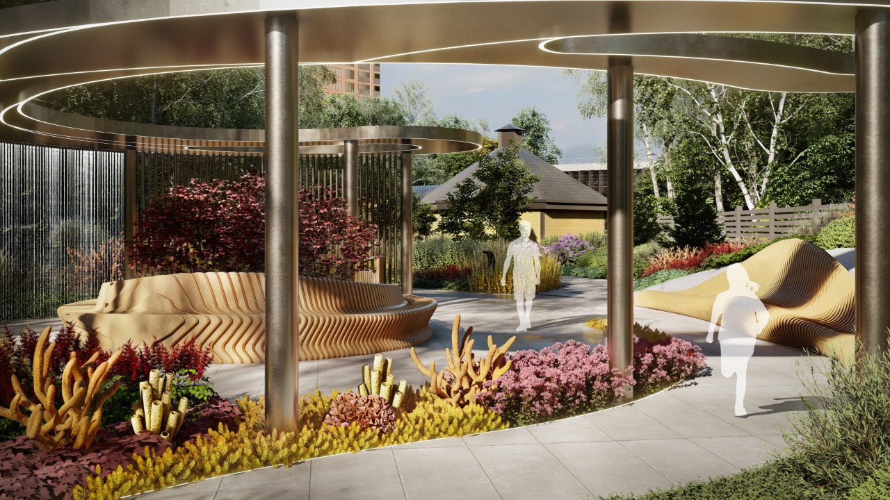 The area of the facility is: 10 718 m². Recreational load: 283 people per day / 2.8 thousand people per month. Natural component: The projected territory is located among the forest.