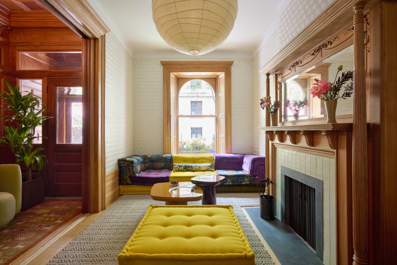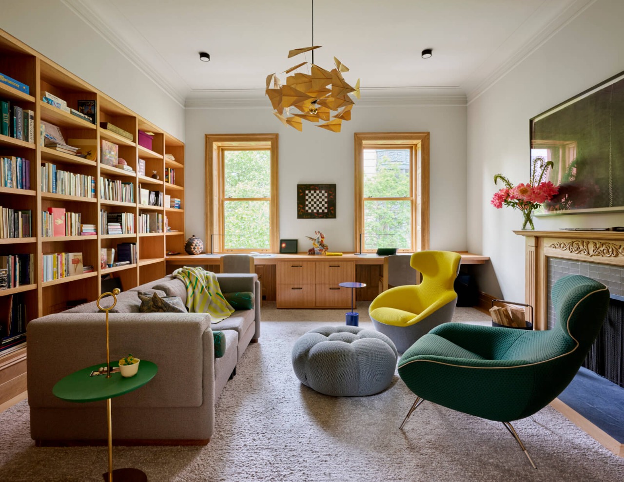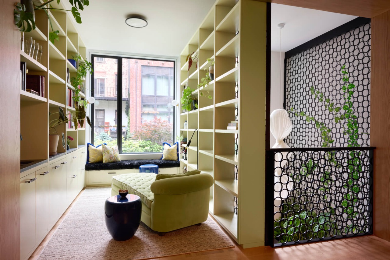 First, each extension added a double-height space to the house, creating a spatial dynamism that’s rare in a brownstone. The double heights also left space for oversized windows, to flood the interior with precious daylight. This not only makes for a viable indoor vine trellis, but also allows for a sunny play space in the middle of the house.