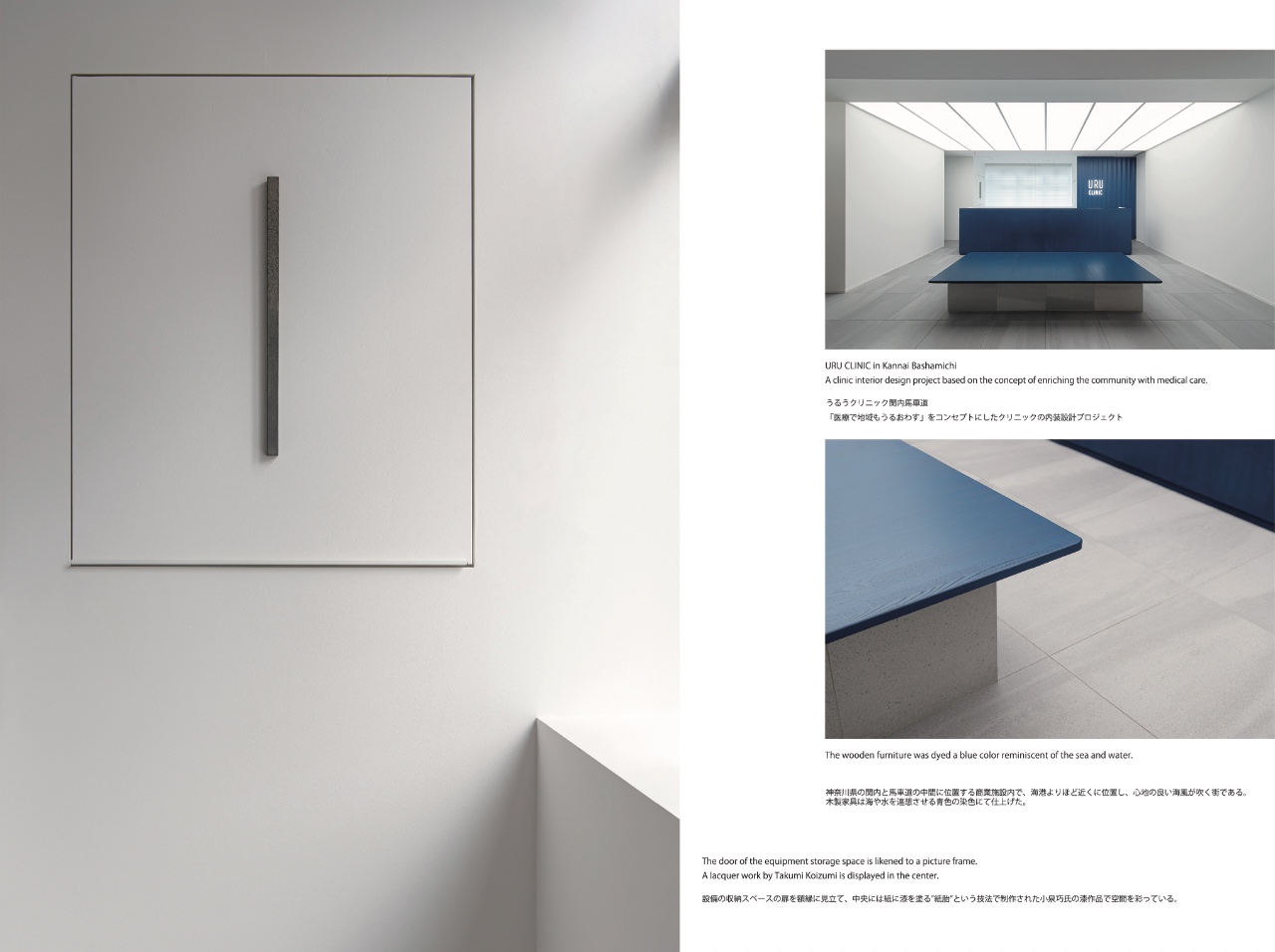 The clinic’s name, URU, means “moisture.”We explored what the concept of “moisture” means. – Moisture for the body – Moisture for the mind – Moisture for the community Taking into consideration the region’s proximity to the ocean, we wanted to express elements essential to living things, such as water and light, through materials, colors, and space.
