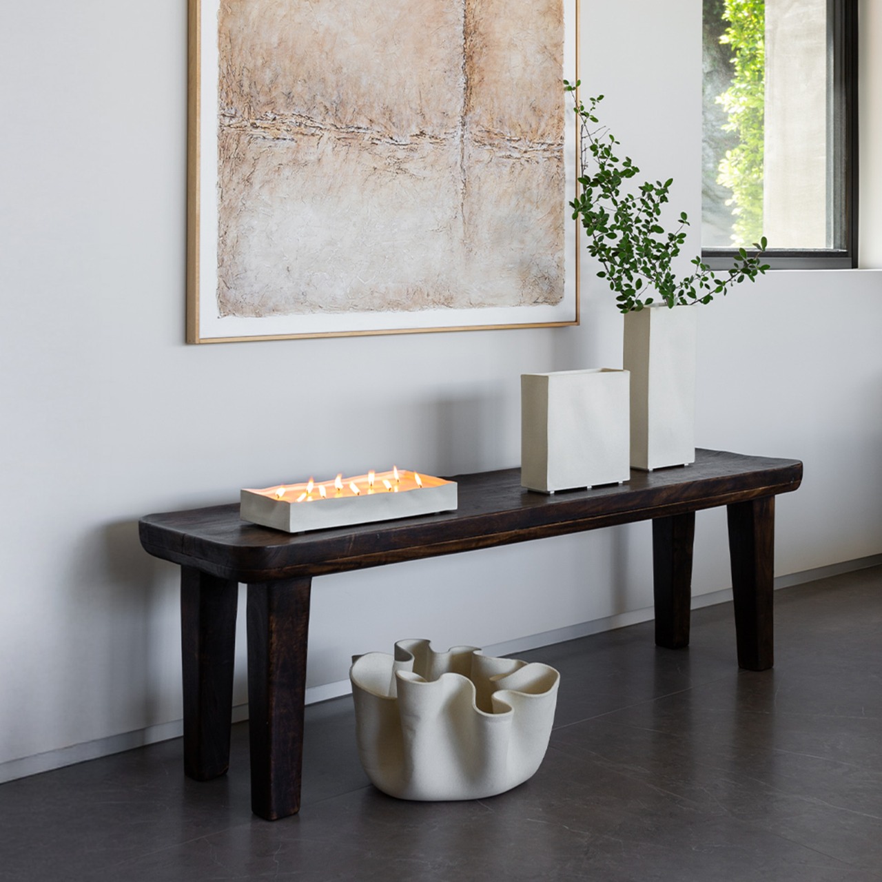 Available in Raw Blanc and Raw Noir, the restrained finish enhances the depth of each contour and brings softness to structured spaces. Whether supporting plants, gathering objects, or standing alone as a sculptural centerpiece, shape leads and function follows.